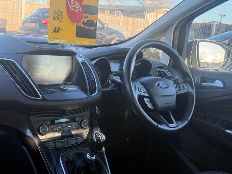 Boasting a full service history and a clear vehicle history check, this 2015 Ford C-Max T Titanium presents a well maintained example. Powered by an efficient 1.0 litre petrol engine, this Euro 6 compliant model offers impressive fuel economy of up to 55 miles per gallon. It has had only two owners and comes with a one month warranty for your peace of mind. Notable features include the Ford SYNC2 DAB Audio System with Bluetooth connectivity, dual zone electronic automatic air conditioning for personalised comfort, and automatic headlights for convenience. This car comes with new wet belt and water pump , fresh mot including 12 months AA breakdown cover. AA extended warranty is available for this vehicle. This car also comes with a new clutch.This Ford C-Max Titanium is designed to make your journeys easier and more enjoyable. Its large boot space provides ample room for shopping or luggage, making it a practical choice for families and individuals alike. The low CO2 emissions are a key advantage, indicating a more environmentally friendly and potentially more cost effective driving experience compared to similar vehicles..