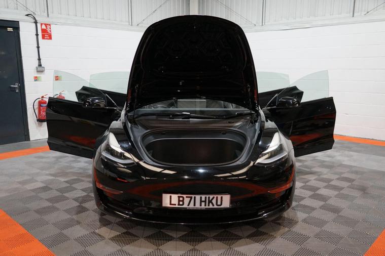 Presented in Solid Black, this Tesla Model 3 Long Range Dual Motor combines cutting-edge technology, exceptional performance, and refined luxury in one of the most advanced all-electric vehicles on the road. Designed to deliver instant torque, long-distance capability, and unmatched innovation, the Model 3 redefines what a modern driving experience should be.Powered by Tesla’s Dual Motor All-Wheel Drive system, the Model 3 provides seamless traction, outstanding acceleration, and confidence-inspiring control in all conditions. The Long Range battery offers impressive efficiency and range, allowing you to travel great distances on a single charge while enjoying near-silent performance.The exterior’s sleek lines and minimalist design are complemented by the panoramic glass roof, flooding the cabin with natural light and enhancing the car’s airy, futuristic feel. Step inside, and you’re met with the desirable white leather interior, offering a perfect blend of luxury and sustainability. Both front and rear seats are heated, while the electric front seats allow for precise comfort adjustment for every journey.The Model 3’s tech-focused cabin is centred around its signature large touchscreen infotainment system, which controls everything from climate to navigation with intuitive ease. Entertainment is taken to another level with Arcade Mode, allowing you and your passengers to enjoy in-car gaming during downtime or while charging.Safety and awareness are enhanced with features such as Century Mode (Sentry Mode) — Tesla’s advanced surveillance system that records activity around the car when parked — and a rear camera that delivers clear visibility when dealer's website futuristic design with everyday practicality, this Tesla Model 3 Long Range Dual Motor in Solid Black offers a truly premium experience. With its luxurious interior, high-tech features, and effortless all-electric performance, it’s a perfect choice for drivers seeking comfort, innovation, and sustainability without compromise..