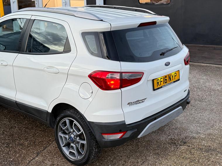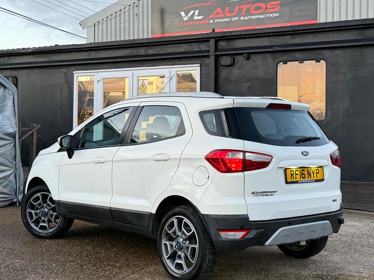 VL Autos are excited to offer a 2016 FORD ECOSPORT for sale. This vehicle is a petrol model, with a 999cc engine, and is finished in white colour. The ECOSPORT is a practical and reliable choice for anyone looking for a compact SUV. This particular model has been well-maintained and features Part leather seats, providing a comfortable driving experience. Additionally, the vehicle has recently been fitted with a New wetbelt, ensuring the engine is in good working order. A New MOT has also been obtained, giving the new owner peace of mind. For added convenience, the vehicle is equipped with Rear parking sensors, making it easier to maneuver in tight spaces. With its petrol engine and compact design, the FORD ECOSPORT is an ideal choice for daily driving in the UK. We invite anyone interested in this vehicle to contact us for more information or to arrange a viewing. Our team is happy to answer any questions and provide a comprehensive overview of the vehicle's features and condition.VL Autos proudly presents this beautiful Ford EcoSport 1.0T EcoBoost Titanium . Only driven 75, 614 miles since new. VL Autos is a Family-Owned business based in Grays, specialising in carefully selected cars. We ensure that all of our cars is HPI clear and had been recently serviced to ensure you have a peace of mind whilst driving. - CLEAR HPI REPORT WILL BE PROVIDED. ULEZ Compliant, THIS CAR IS CHECKED AND TESTED BY CERTIFIED MECHANICS. New MOT - 26.11.2026.Excellent condition inside and out - Extra Additional Such As - Climate Control - Drive Away Door Lock -Rear Parking Sensors - BT/AUX Connection - Many more features. For more details please call any time.Full details and specs can be found on our website.3 months free warranty included-Want to protect your investment for longer? Then we offer extendable warranty.