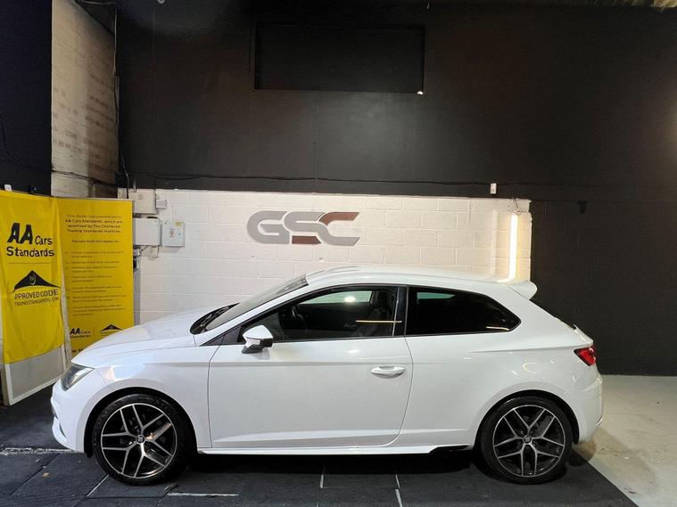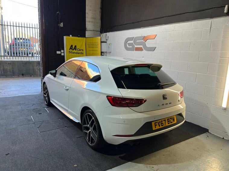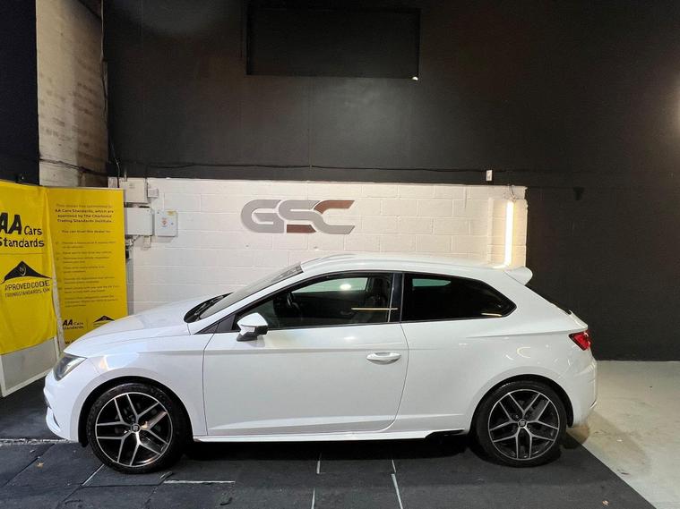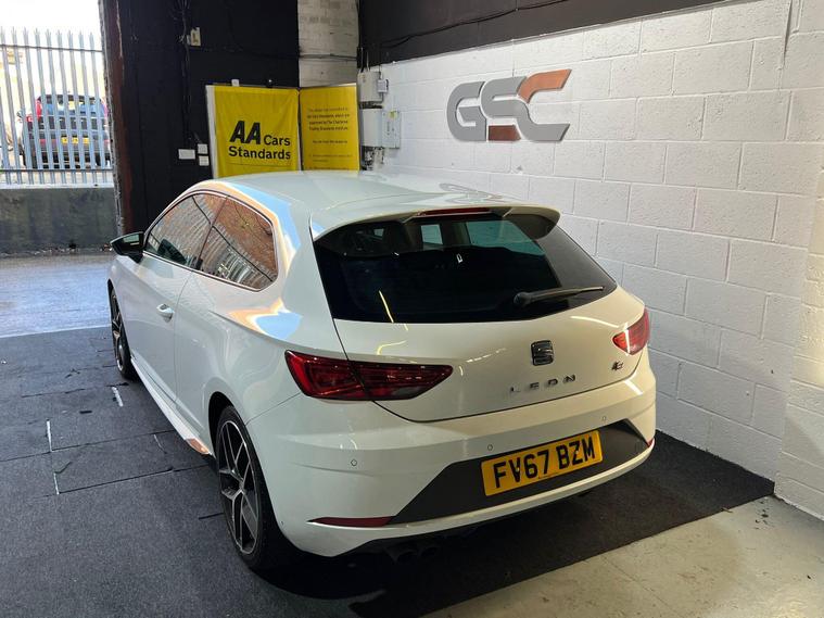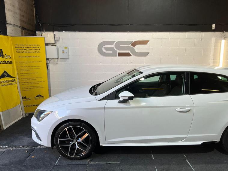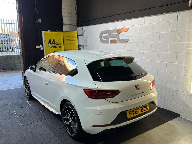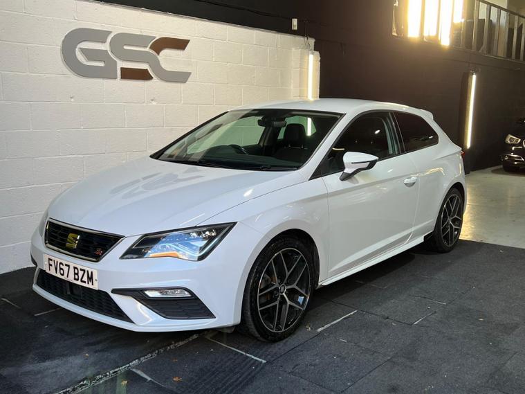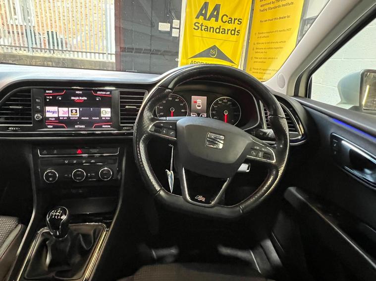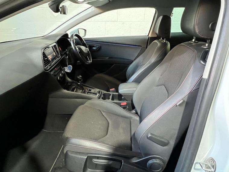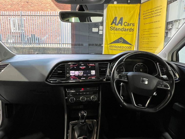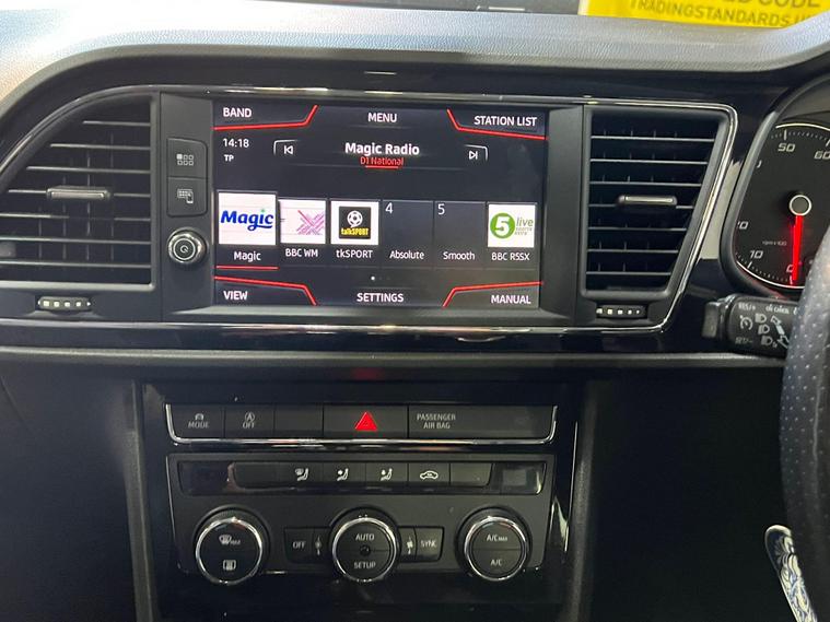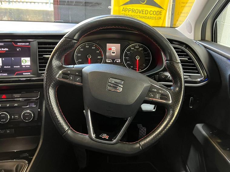 This 2017 SEAT Leon TSI FR Titanium Technology boasts an exceptionally low mileage for its age, having covered just 55, 174 miles. This Euro 6 compliant 1.4 litre petrol model comes with a clear vehicle history check and a partial service history, with the last service completed on 2nd December 2025 at 55, 000 miles. You can drive with peace of mind knowing it includes a 3 month warranty. Notable features include Full Link, which seamlessly integrates your smartphone with Android Auto and Apple CarPlay, Full LED headlights for excellent visibility, and rear parking sensors to assist with manoeuvring.Experience the impressive performance of this Leon, achieving 0-62mph in just 8.9 seconds, a testament to its dynamic driving capabilities. Its fuel economy is a significant highlight, offering up to 54 mpg, making it an economical choice for your journeys. The dual zone climate control ensures comfort for all occupants, while the Media System Plus with Bluetooth connectivity keeps you entertained and connected on the go. Furthermore, the generous boot space provides ample room for luggage or shopping, making this SEAT Leon a practical and enjoyable vehicle that stands out from others in its class..