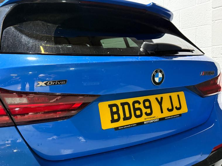 Boasting exceptionally low mileage for its age, this 2019 BMW 1 Series M135i presents a compelling proposition. This Euro 6 compliant model features a potent 2.0L petrol engine paired with a sophisticated four wheel drive system, ensuring confident performance in all conditions. With a clear vehicle history check and a full service history, including its last service on 2025-12-02 at 30892 miles, this car offers peace of mind, further enhanced by a 3 month warranty. Notable features include rain sensors for automatic headlight activation, dual zone climate control for personalised comfort, and front and rear parking distance control to aid manoeuvrability.Experience exhilarating performance with this BMW 1 Series, capable of accelerating from 0-62mph in a remarkable 4.8 seconds, a figure that truly sets it apart from similar vehicles. The generous boot space provides ample practicality for everyday needs and longer journeys. Stay connected and entertained with the integrated Bluetooth hands free system, offering USB audio connectivity and audio streaming for compatible devices. This M135i variant combines sporty dynamics with everyday usability, making it an outstanding choice for those seeking a premium hatchback..