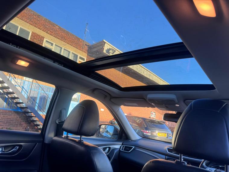 This 2017 Nissan X-Trail dCi Tekna offers a versatile and well equipped driving experience. As a Euro 6 compliant model, it features a 1.6 litre diesel engine and is presented in the desirable Tekna trim. This particular example benefits from the 7 seat upgrade, a panoramic sunroof with a one touch shade, and heated front seats for added comfort. Parking is made easier with front and rear parking sensors, and the advanced Safety Shield includes Blind Spot Assistance, enhancing your awareness on the road.With an impressive fuel economy of 53 miles per gallon, this X-Trail is an economical choice for both city driving and longer journeys. Its low insurance group rating further contributes to its affordability. The generous boot space ensures you have ample room for luggage, shopping, or equipment, making it a practical option for families and active lifestyles. These highlights demonstrate how this Nissan X-Trail stands out from other vehicles in its class..