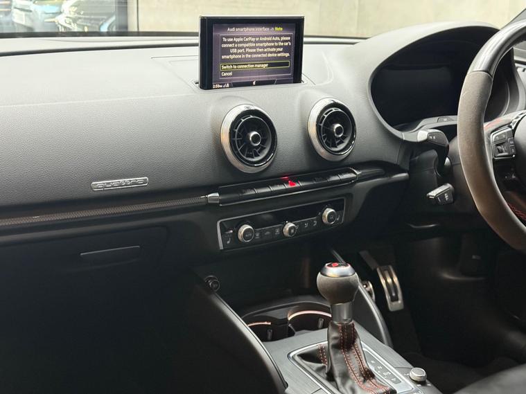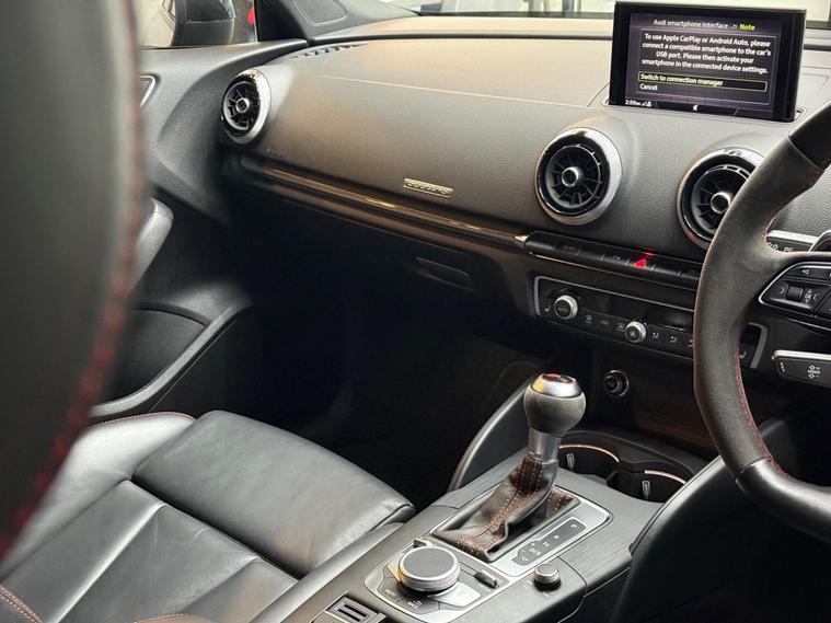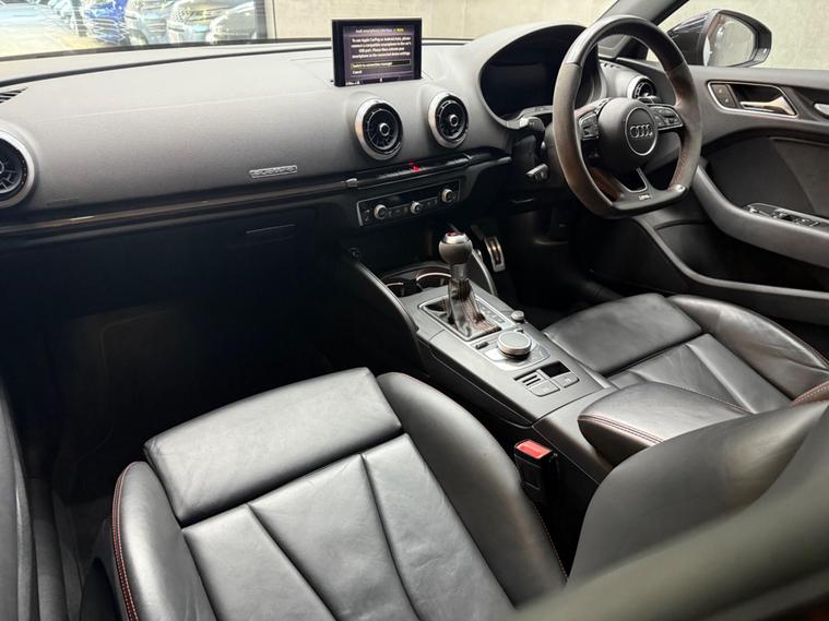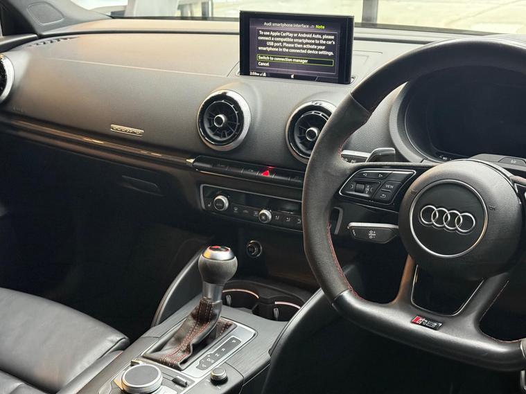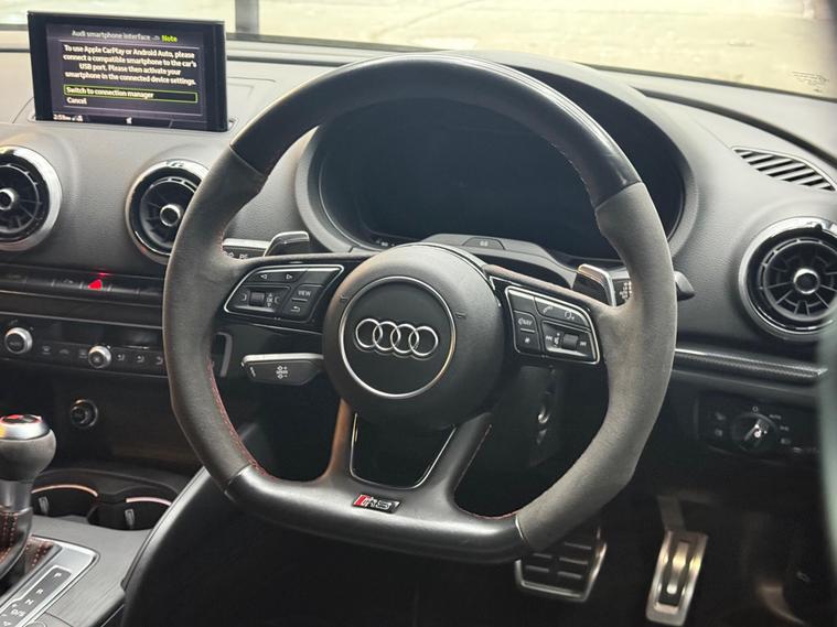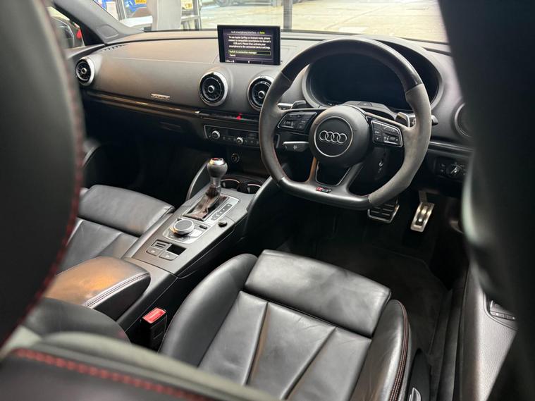 This 2019 Audi RS3 TFSI offers an exhilarating driving experience with its potent 2.5 litre petrol engine and four wheel drive system. As a Euro 6 compliant vehicle, it meets modern emissions standards. Inside, you'll find comfortable heated front seats, illuminated RS3 branded door sill trims, and practical stainless steel pedals. The MMI system keeps you connected, allowing you to view emails and text messages directly on the display, while Hill Hold Assist provides an extra layer of convenience.The performance of this Audi RS3 is truly impressive, achieving 0-62mph in just 4.1 seconds. This rapid acceleration demonstrates how this particular model surpasses many others in its class, offering a dynamic and responsive drive. The combination of its powerful engine, advanced drivetrain, and thoughtful features makes this RS3 a compelling choice for those seeking both performance and everyday usability..