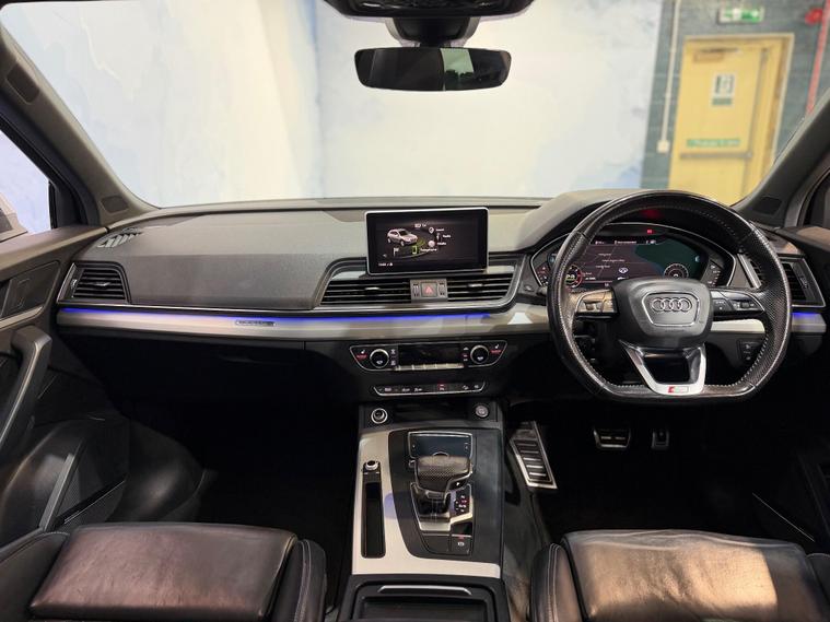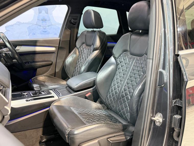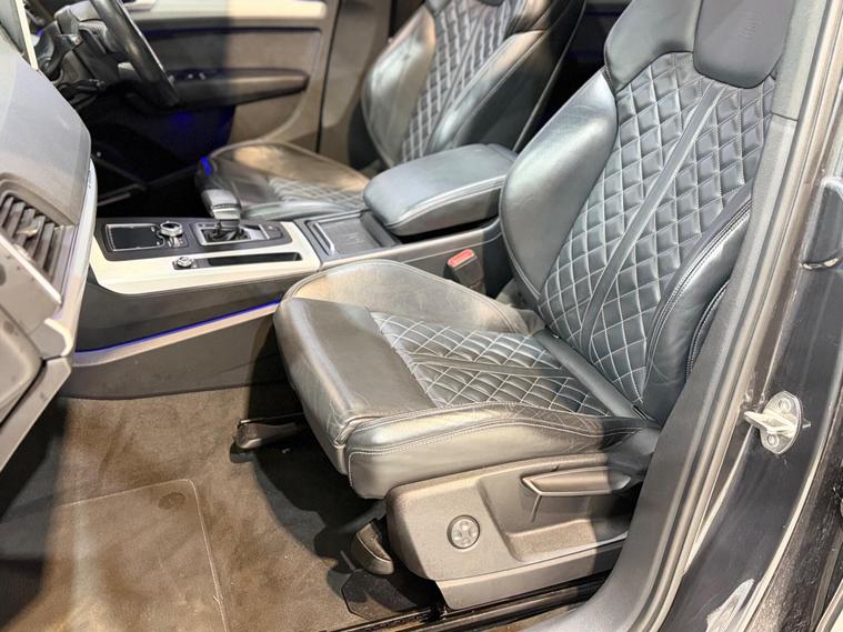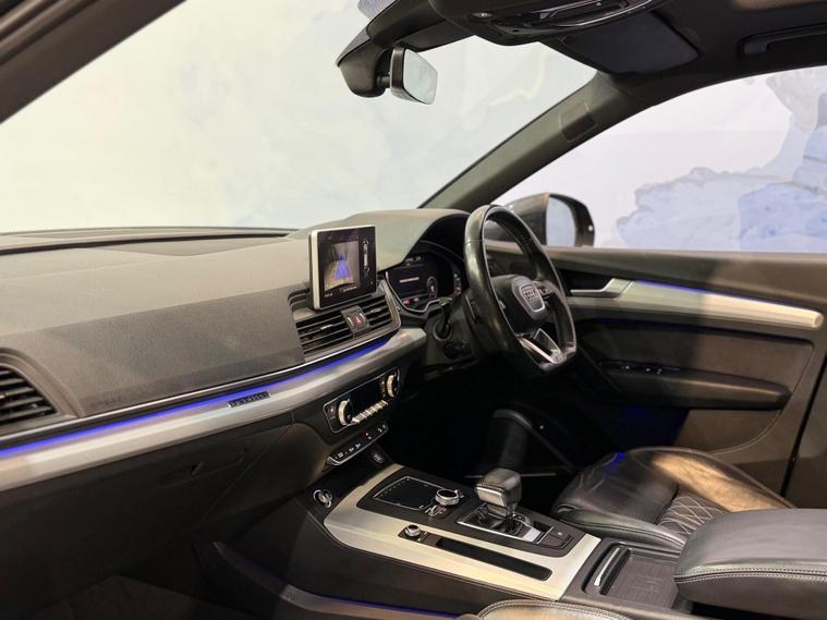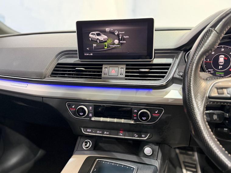 This 2017 Audi Q5 TDI S line offers a superb blend of performance and refinement, boasting a powerful 2.0 litre diesel engine and a smooth four wheel drive system. As a Euro 6 compliant vehicle, it ensures lower emissions, making it an environmentally conscious choice. The S line trim level enhances its sporty appeal, complemented by striking 21 inch alloy wheels in a 5 arm polygon design. Inside, you'll find luxurious Fine Nappa leather sport seats with an S1 embossed logo in black, offering both comfort and style. The Comfort and Sound Package adds convenience with keyless entry, while the Technology Package includes Bluetooth connectivity and wireless phone charging, keeping you connected on the go.Experience impressive efficiency with a highlighted fuel economy of 55 mpg, demonstrating its capability to cover long distances economically. The Q5 also provides ample practicality with its large boot space, perfect for luggage or shopping. Its acceleration from 0 to 62 mph in just 7.9 seconds indicates a responsive driving experience. Furthermore, its low CO2 emissions highlight its efficiency compared to other vehicles in its class. For added enjoyment and versatility, this Q5 features a panoramic glass sunroof that can be opened, allowing you to enjoy the open air. With a towing weight of 2400 kg, it is also well equipped for carrying heavier loads..