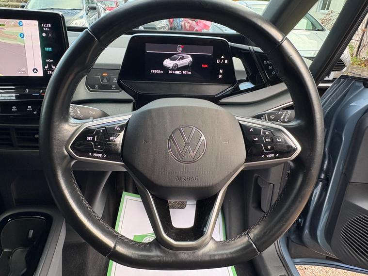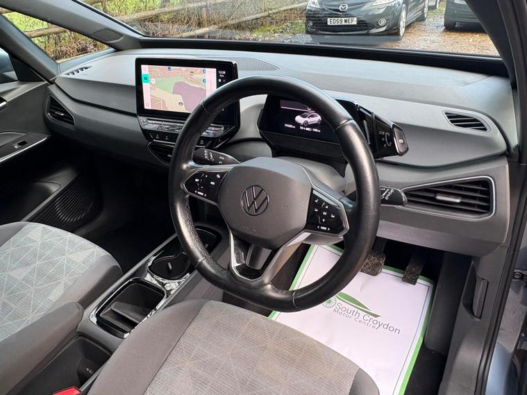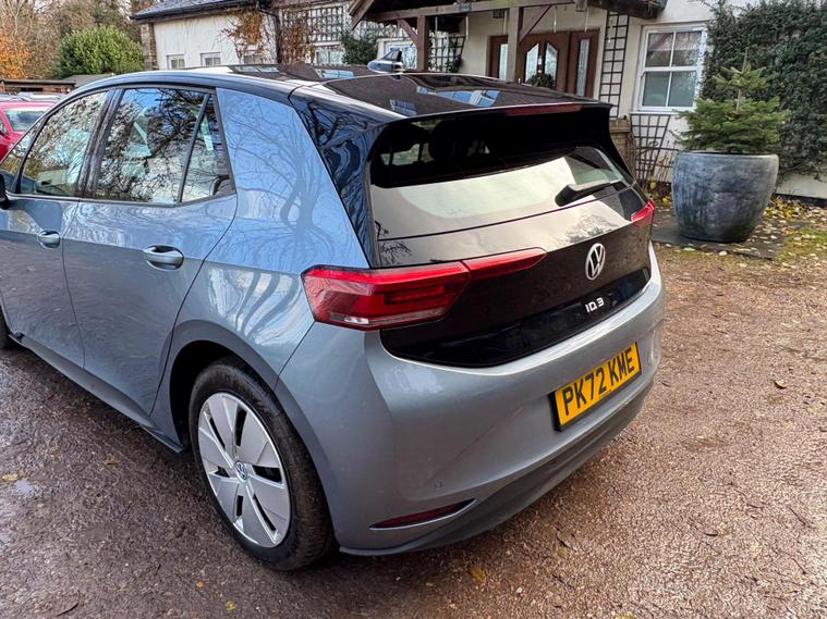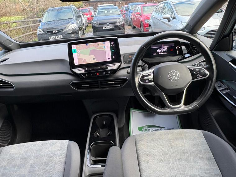 This 2022 Volkswagen ID.3 Pro Life is a fantastic example of electric motoring, having been owned by just one person since new. As an electric vehicle, it offers a smooth and quiet driving experience, powered by a 62 kWh battery that provides a maximum range of 260 miles when new. This ID.3 comes equipped with a range of advanced features designed for comfort and convenience, including Adaptive Cruise Control with Front Assist and City Emergency Braking, a 1 Zone Climatronic system for climate control, and All LED Headlights for excellent visibility. The Comfort Package adds heated seats and a heated steering wheel, perfect for colder days, while front and rear parking sensors make manoeuvring effortless.The large boot space in this Volkswagen ID.3 Pro Life offers ample room for shopping or luggage, making it a practical choice for everyday use and longer journeys. Its impressive battery range of 260 miles when new means fewer stops for charging, and when you do need to recharge, a full charge at home using a 7kW charger takes approximately 9 hours and 30 minutes. For quicker top ups, the fastest public charging time from empty to 80% is an efficient 37 minutes, demonstrating the advanced charging capabilities of this electric vehicle. These features collectively highlight how this ID.3 offers a superior electric driving experience compared to many other vehicles on the market..