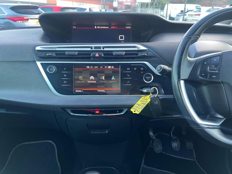 This 2019 Citroen Grand C4 SpaceTourer Feel boasts a full service history, offering peace of mind for its next owner. This versatile 7 seater is powered by an efficient 1.2 litre petrol engine and meets Euro 6 emissions standards. Inside, you'll find automatic digital dual zone air conditioning for personalised comfort, along with front and rear parking sensors to aid manoeuvring. Stay connected on the go with Bluetooth handsfree and media streaming, complete with a USB socket, and enjoy seamless smartphone integration through Mirror Screen with MirrorLink and Apple CarPlay..