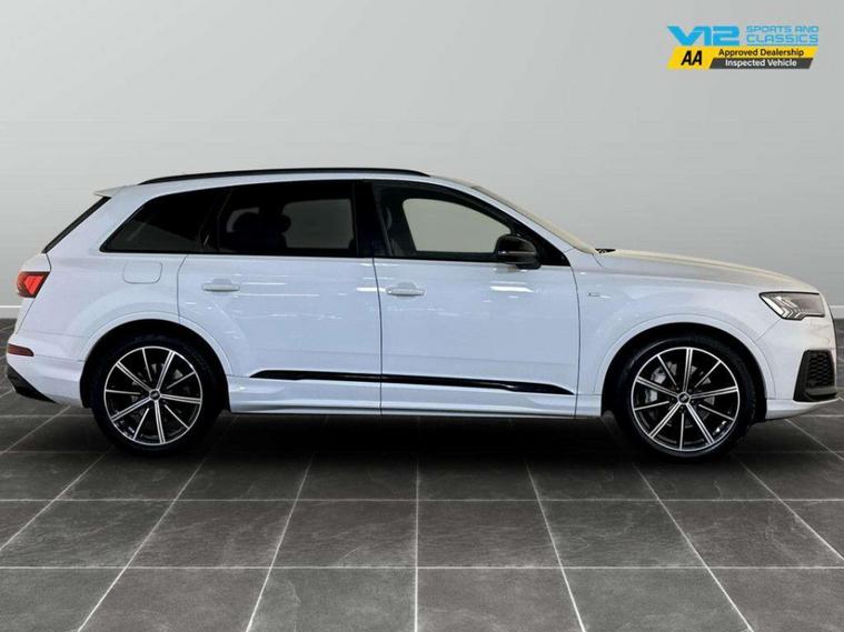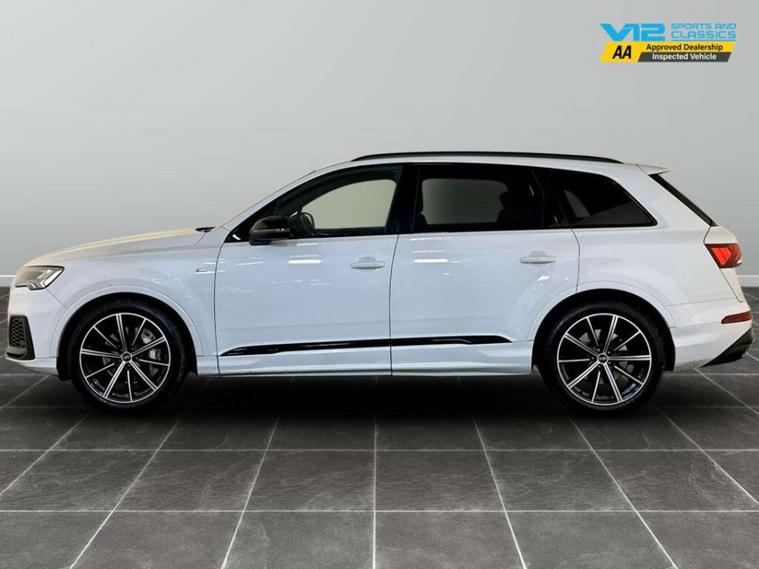 This 2021 Audi Q7 TFSI V6 Black Edition is a superb example, having had only one owner since new. This impressive seven seat SUV boasts a powerful 3.0 litre petrol engine and a four wheel drive drivetrain, ensuring confident performance in all conditions. As a Euro 6 compliant vehicle, it meets modern emissions standards. The Black Edition trim enhances its already striking appearance, and you'll appreciate the convenience of heated front seats, advanced Audi Matrix LED headlights with dynamic indicators, and the integrated Audi Smartphone Interface for seamless connectivity with Android Auto and Apple CarPlay. Further enhancing your driving experience are the Audi Phone Box with wireless charging and a helpful rear view camera for easier parking. This Q7 offers a compelling blend of performance and practicality. Its ability to accelerate from 0 to 62mph in just 5.9 seconds demonstrates its dynamic capabilities, setting it apart from many other vehicles in its class. The generous boot space provides ample room for luggage or shopping, making it ideal for families or those who need extra capacity. Furthermore, its low insurance group rating suggests that running costs could be more economical compared to similar models. With a substantial towing weight of 3500 kg, this Audi Q7 is also exceptionally well equipped for towing caravans or trailers.For peace of mind this vehicle has only had 1 registered owner and has completed a multi point AA dealer's website finance is also available.We are open 7 days a week and have more than 1500 cars to choose from.All our Euro 4 Petrol and Euro 6 Diesel vehicles meet the ULEZ standard.Vehicle specification can be found below. From time to time vehicles have manufacturer recalls notified. Please read our recall policy on our website for further information..