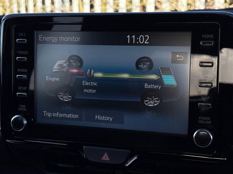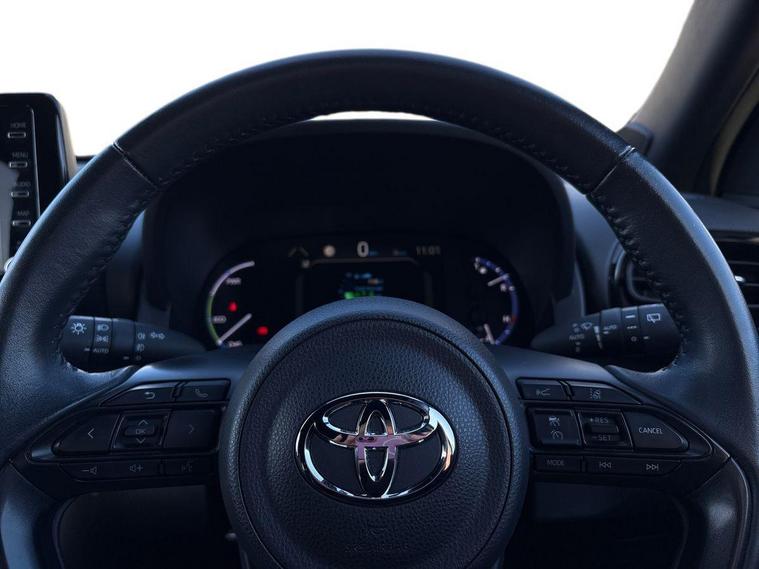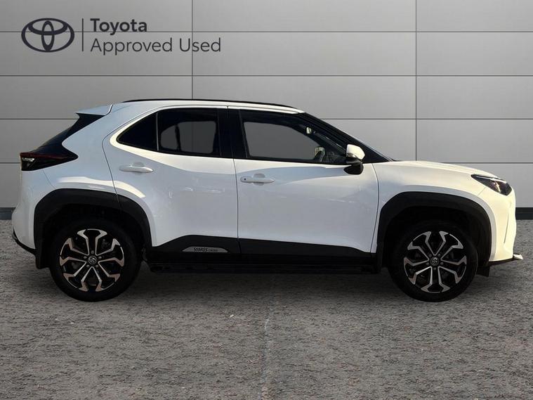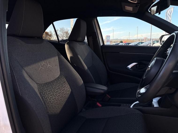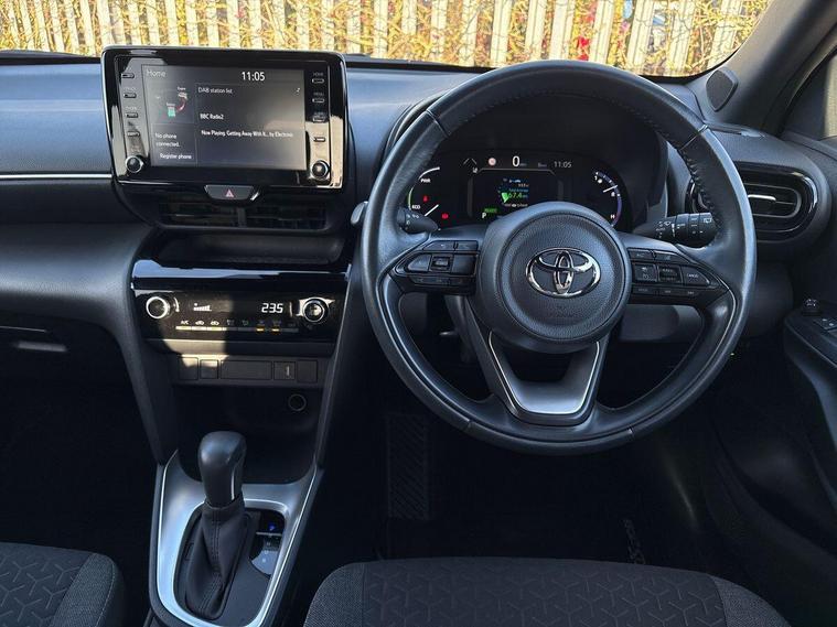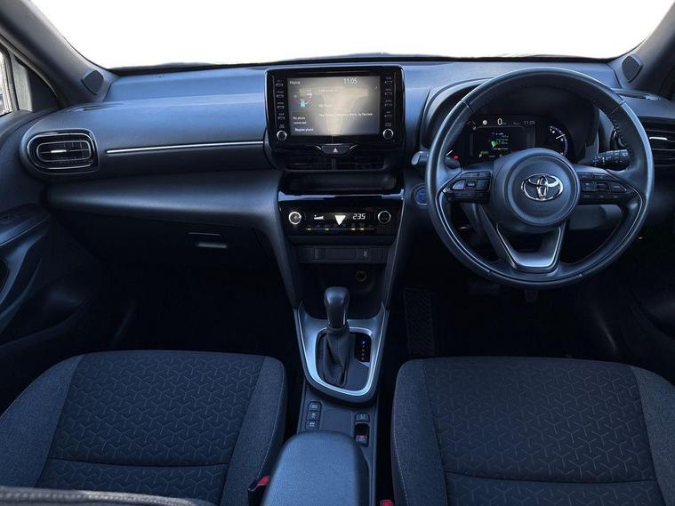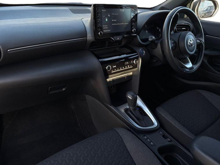 This 2022 Toyota Yaris Cross VVT-h Design is a Toyota manufacturer approved vehicle with a full service history, having had only one owner. It boasts a 1.5L Petrol Hybrid Engine and meets Euro 6 emission standards. The MOT is valid until December 2025, and the last service was completed on 2024-12-07 at 18, 636 miles. Key features include Smart Entry and Push-Button Start for convenient access, Bluetooth connectivity for seamless phone integration, and automatic LED projector headlights that illuminate the road ahead. The 8in Toyota Touch 2 multimedia system supports Apple CarPlay and Android Auto, keeping you connected and entertained on every journey. A 12-month warranty provides added peace of mind.The Yaris Cross Design offers excellent running costs, highlighted by an impressive fuel economy of 63 mpg, which is better than many similar vehicles. Its low CO2 emissions and low insurance group also contribute to making it a more economical choice for drivers. This combination of efficiency, modern technology, and Toyota's renowned reliability makes this Yaris Cross a compelling option..