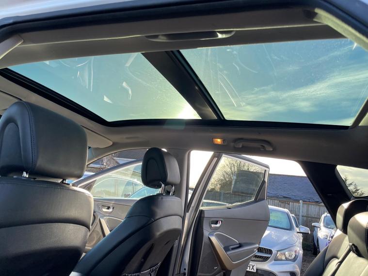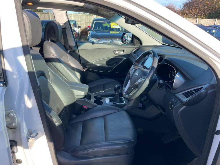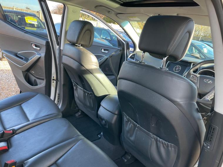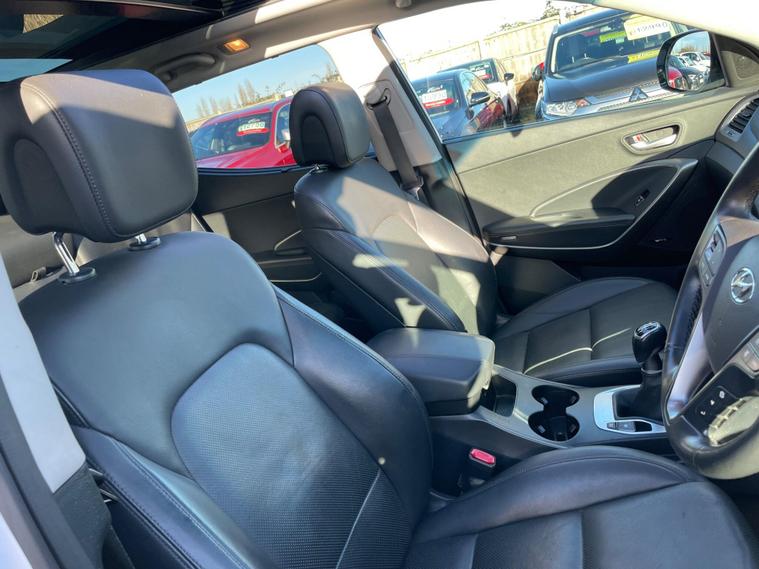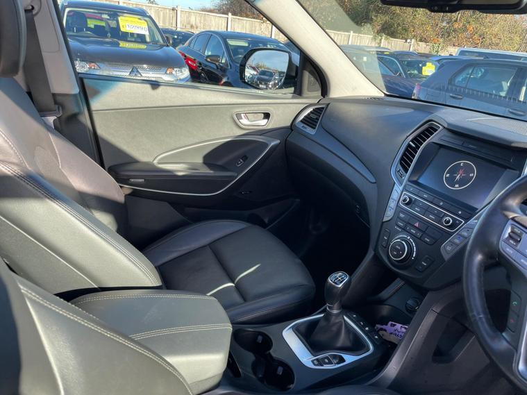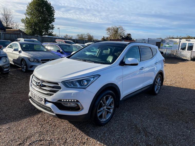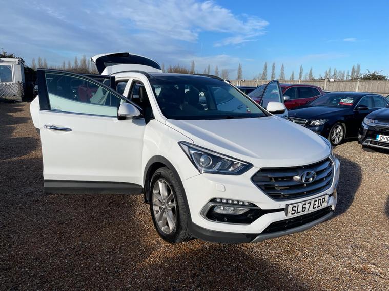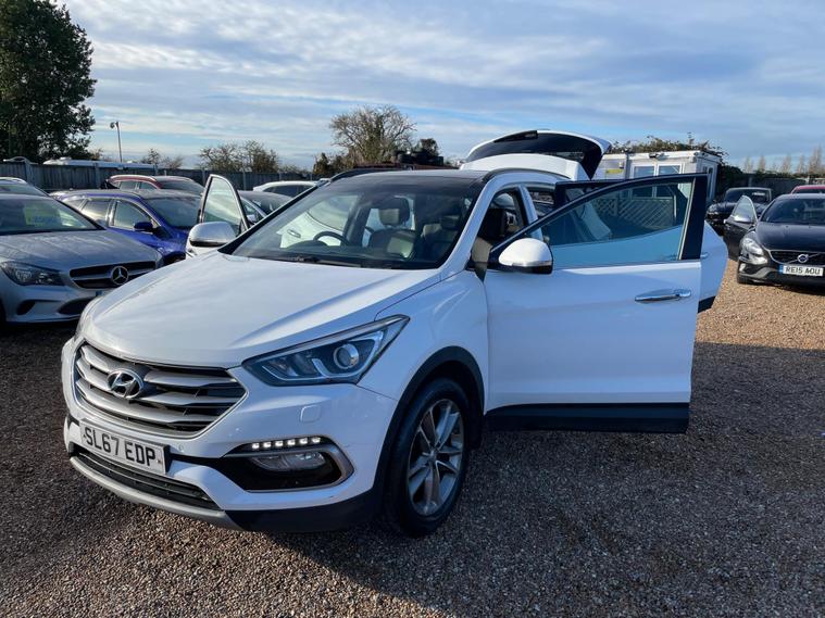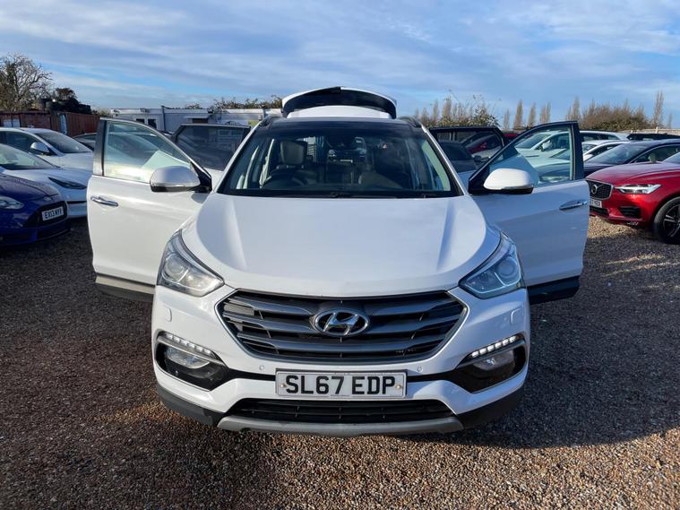 ZERO DEPOSIT FINANCE AVAILABLE, 6 MONTHS NATIONWIDE WARRANTY, 12 Months Free AA Breakdown Cover, Full Service History, Hpi Clear, 2 keys, all previews MOTs available, we are located at CANVEY ROAD, CANVEY ISLAND, ESSEX, SS8 0QD, This 2017 Hyundai Santa Fe CRDi Premium SE is a superb example, having been owned by just one person from new. This seven seat, four wheel drive SUV is powered by an efficient 2.2 litre Euro 6 diesel engine, offering a substantial towing weight of 2500 kg. The Premium SE trim level ensures a comfortable and convenient driving experience, with features such as a heated steering wheel, dual zone climate control, and heated front seats. Stay connected on the go with Bluetooth connectivity, and drive with added confidence thanks to the Blind Spot Detection System.The generous boot space makes this Santa Fe incredibly practical for families and adventurers alike. These notable features, combined with its single owner provenance, set this particular Hyundai Santa Fe apart from other similar vehicles on the market, offering a well maintained and highly equipped option for your next car..