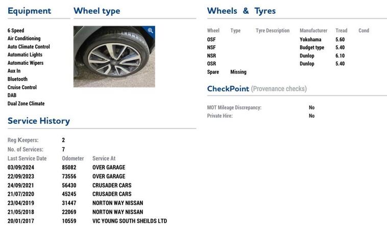 This 2015 Nissan Qashqai dCi Tekna boasts a clear vehicle history and has had only two owners, offering peace of mind for its next keeper. This popular model features a 1.5L Diesel engine and meets Euro 6 emission standards. Inside, you'll find a spacious cabin equipped with a Panoramic Glass Roof, perfect for enjoying the sky above, and Dual Zone Climate Control to keep everyone comfortable. For convenience, it includes Bluetooth integration for handsfree calls and music, heated front seats for those colder mornings, and a Rear View Camera to assist with parking. Heated seats and Blind spot detection. The Qashqai Tekna is designed to be economical and affordable to run, with an impressive fuel economy of 71 mpg, which is significantly better than many other vehicles in its class. Its low CO2 emissions also contribute to its environmental credentials, and it sits in a low insurance group, making it a cost effective choice for many drivers. These highlights demonstrate how this Qashqai offers a superior ownership experience.39/39 scored on a mechanical Surecheck report.MOT Till 05/11/26. Just been serviced by us. ULEZ Complaint and 2 Keys. 2 owners from new. £5850 NO OFFERS..