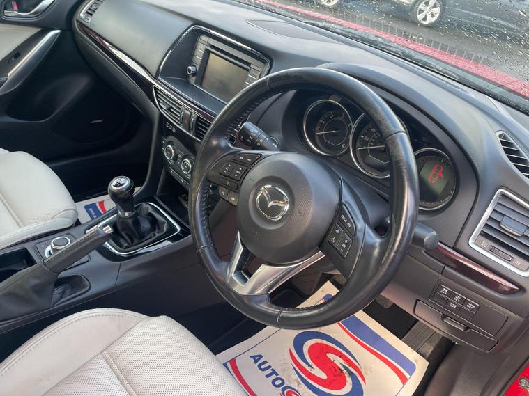 This 2014 Mazda6 SKYACTIV-D Sport Nav presents an exceptional opportunity with its remarkably low mileage of just 74, 600 miles for its age. This well appointed diesel model, featuring the Sport Nav trim and a 2.2 litre engine, is compliant with Euro 6 emissions standards. Inside, you will find comfort and convenience with dual zone climate control and a premium BOSE Centrepoint Surround System with eleven speakers. Driving and parking are made easier with a reversing camera and Bi-Xenon headlights, while the driver's electric seat adjustment with memory ensures a personalised driving position.This Mazda6 stands out with its impressive fuel economy, achieving an excellent 63 miles per gallon, which is significantly better than many other vehicles in its class. Its low CO2 emissions further contribute to its cost effectiveness and environmental consideration. The generous boot space offers practicality for everyday needs and longer journeys. Furthermore, its placement in a low insurance group makes it an economical choice for many drivers, indicating lower running costs compared to similar vehicles..