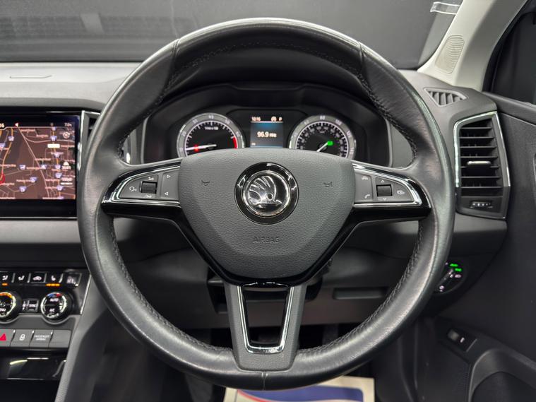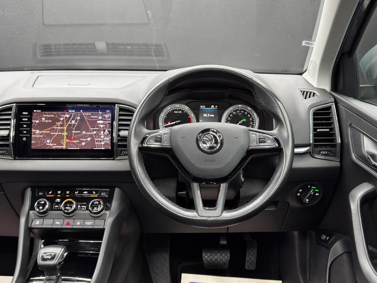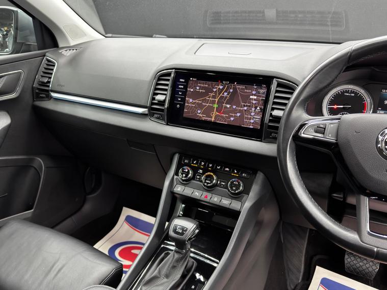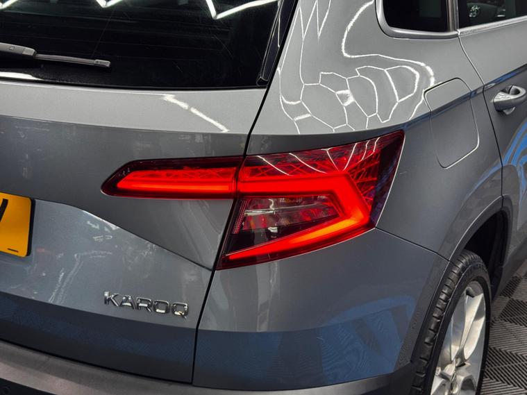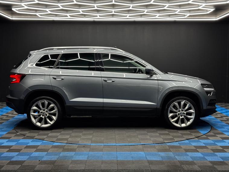 Here at Motor Gurus we are delighted to offer a Skoda Karoq 1.5 TSI Edition DSG. This vehicle is in immaculate condition inside and out. This specific vehicle is finished in a METALLIC GREY and is contrasted by a BLACK LEATHER interior. This vehicle comes included with: FRONT & REAR PARKING SENSORS, REAR PARKING CAMERA, ELECTRIC TAILGATE, PRIVACY GLASS, SLIDING GLASS PANORAMIC ROOF, HEATED SIDE MIRRORS, REAR PASSENGER TRAYS, DRIVER ELECTRIC/MEMORY SEAT, FRONT HEATED SEATS, AUTOMATIC HEADLIGHTS, CRUISE CONTROL, TWIN CUPHOLDERS, AUTO HOLD, WIRELESS PHONE CHARGING, SAT NAVIGATION, DAB RADIO, BLUETOOTH AUDIO, TELEPHONE CONNECTIVITY, APPLE CARPLAY, LANE/BLIND SPOT/REAR & FRONT ASSIST, AMBIENT LIGHTING, TYRE PRESSURE MONITORING AND MUCH MORE! Our Skoda Karoq 1.5 TSI Edition DSG has come to us with FULL SERVICE HISTORY, 2 KEYS and is a 1 FORMER KEEPER (2 owners) FROM NEW! We will also provide this vehicle with a 12 MONTH MOT as well as a FRESH OIL SERVICE before it leaves our premises (OTR)..