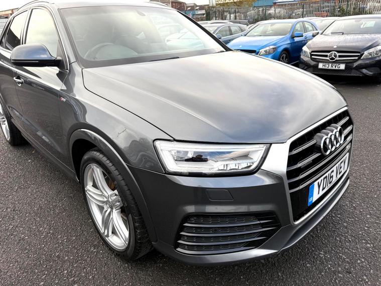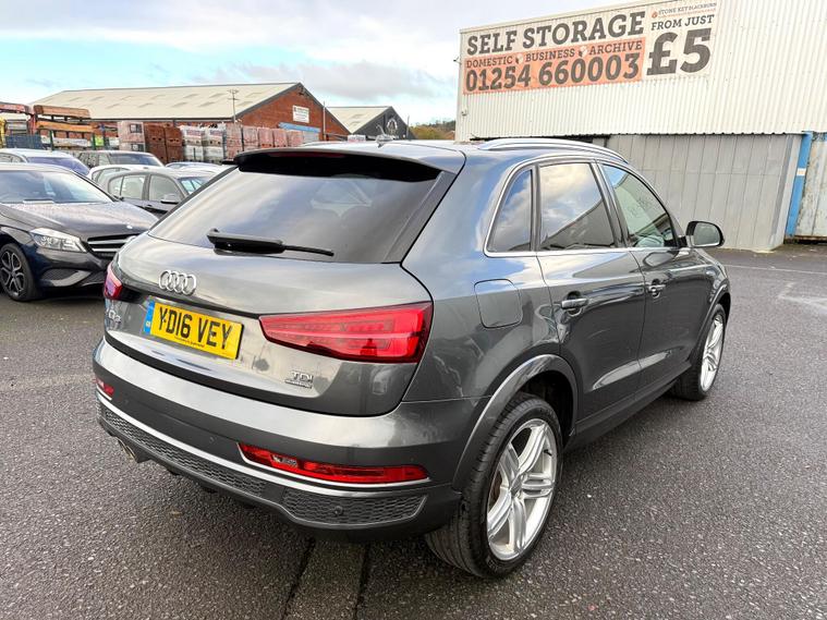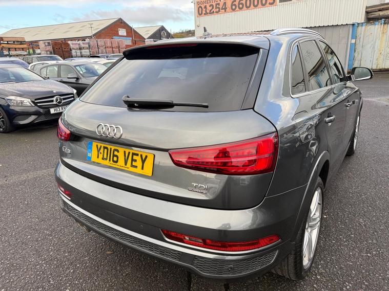 ***Viewings are by appointments only ***FINANCE AVAILABLE CALL US 01254378935, 1 F K Since 2019 + Service History + Timing belt Replaced + gearbox Service done invoice attached + Navigation + Parking Sensors + Climate Control + Half Leather Trim + 19'' Alloy Wheels + Privacy Glass + Additional Information + 2 Keys + Mot Till 01/11/2026 + Good condition in & out, All our Cars are Mechanically inspected and Fully Valeted To The High Standards, any inspection welcome, Vehicles can be secured with a small deposit, WE ARE IN GEORGE STREET WEST BLACKBURN BB2 1PQ ( ***** OPPOSITE AMBULANCE STATION *****) This 2016 Audi Q3 TDI S line Plus offers a superb blend of style and efficiency, boasting a 2.0 litre diesel engine and Four Wheel Drive for confident handling in all conditions. As a Euro 6 compliant vehicle, it meets stringent emission standards, and its S line Plus trim ensures a premium feel throughout.With an impressive fuel economy of 53 miles per gallon, this Q3 is designed to be economical for your journeys. It also sits in a low insurance group, which can help to keep your running costs down. The acceleration from 0 to 60 miles per hour in just 9.0 seconds demonstrates that this vehicle offers a responsive and enjoyable driving experience, outperforming many other vehicles in its class..