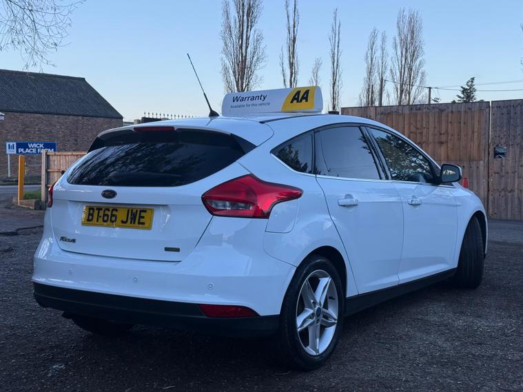 This 2017 Ford Focus Titanium boasts a full service history, ensuring excellent provenance for this popular model. Powered by an efficient 1.0L Euro 6 petrol engine, this T Titanium variant offers a refined driving experience. You can drive with confidence knowing it comes with 12 months MOT provided on purchase and a 1 month warranty. Inside, enjoy the comfort of dual zone climate control, stay connected with the Bluetooth handsfree system, and benefit from the convenience of rear parking sensors. This car comes with new wet belt & water pump , fresh service and mot on it. Car comes with 12 month AA breakdown cover. Extended AA warranty for this vehicle is available .The Ford Focus is renowned for its practicality, and this Titanium model is no exception, featuring a large boot space perfect for shopping trips or luggage. The inclusion of rear parking assistance makes manoeuvring in tight spots considerably easier. These features, combined with its comprehensive service history and warranty, highlight how this particular Ford Focus Titanium stands out as a well maintained and equipped choice within its class..