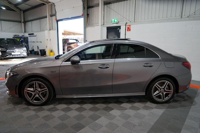 Sleek, efficient and packed with premium features, this Mercedes-Benz A250e AMG Line (Premium Plus 2) looks exceptional finished in the stylish and modern Mountain Grey metallic. With its sporty AMG styling and sharp body lines, it’s a car that delivers both elegance and dynamic appeal. The look is completed with stunning 18-inch diamond cut AMG alloy wheels, giving it an unmistakably premium stance on the road.Step inside and the cabin instantly impresses with its blend of luxury materials and cutting-edge technology. The leather and alcantara sports seats not only look fantastic but also offer superb comfort and support, complemented perfectly by heated front seats for added warmth on cooler days. Both electric front seats come with memory settings, ensuring every drive starts with your ideal position stored and ready.The interior is brought to life by Mercedes’ iconic ambient lighting, allowing you to set the perfect atmosphere with a wide range of colour options. The impressive dual-screen setup features a crisp digital dashboard alongside the large 10.25-inch MBUX entertainment system with Apple CarPlay and Android Auto for effortless connectivity.Driving is a pleasure thanks to the intuitive multifunctional steering wheel, while the expansive panoramic sunroof floods the cabin with natural light, enhancing the sense of space and dealer's website plug-in hybrid efficiency with AMG Line style and the top-tier Premium Plus 2 features, this A250e delivers advanced technology, exceptional comfort and standout looks—making it a truly desirable compact Mercedes-Benz..