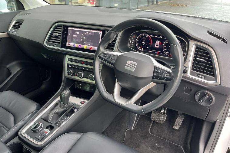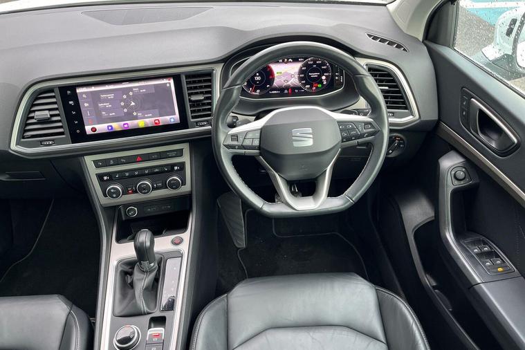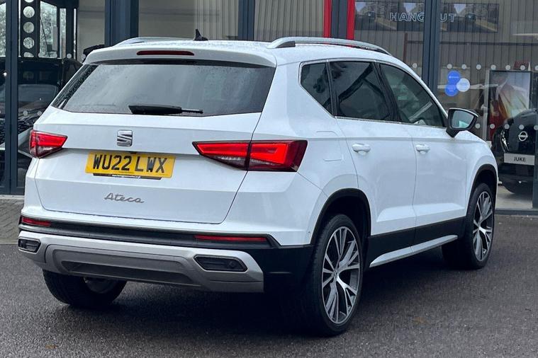 This 2022 SEAT Ateca TSI EVO XPERIENCE Lux is a manufacturer approved vehicle, offering peace of mind with its SEAT provenance. Powered by a 1.5 litre Euro 6 petrol engine, this XPERIENCE Lux trim model combines style with practicality. Inside, you'll find comfort features like heated front seats and dual zone climate control, ensuring a pleasant journey for everyone. Convenience is also key, with a wireless phone charger and a rear view camera that is part of the comprehensive parking assistance system, including a 360 degree Top View Camera.The SEAT Ateca TSI EVO XPERIENCE Lux boasts impressive performance, accelerating from 0 to 62 miles per hour in just 9.0 seconds, demonstrating its responsive nature. This acceleration capability sets it apart from many other vehicles in its class. Furthermore, the generous boot space provides ample room for luggage, shopping, or sports equipment, making it a highly versatile choice for families and individuals alike..