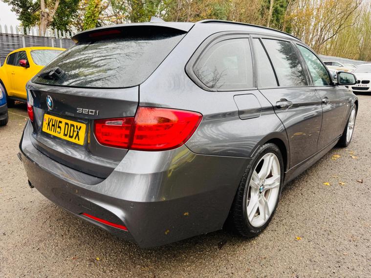 GREY, FINANCE AVAILABLE, NAVIGATION SYSTEM, REVERSE CAMERA AND PARKING SENSORS, ADAPTIVE CRUISE CONTROL, SPARE KEY, APPLE CAR PLAY, ONLY ONE OWNER, ELECTRIC TALIGATE BOOT, PRIVACY GLASS, ULEZ COMPLIANTWARRANTED AND VARIFIABLE LOW MILEAGE WITH IMPORTED DOCUMENTS.This 2015 BMW 3 Series 320i M Sport boasts an MOT valid until November 2026, offering excellent peace of mind. This stylish saloon features a 2.0L petrol engine with High Precision Injection and Double Vanos technology, ensuring efficient performance. It meets Euro 6 emission standards, making it a more environmentally conscious choice. The M Sport trim enhances its sporty appeal, and you'll appreciate the convenience of automatic headlights and rear parking distance control. Inside, the automatic climate control with two zone settings provides a comfortable driving environment for everyone.Experience the dynamic capabilities of this BMW 3 Series, which accelerates from 0 to 62mph in just 7.5 seconds. This impressive acceleration figure highlights its superior performance compared to many other vehicles in its class. The combination of its powerful yet efficient engine, refined M Sport styling, and advanced features like automatic activation headlights and rear parking sensors makes this 320i M Sport a compelling option for those seeking a premium driving experience..