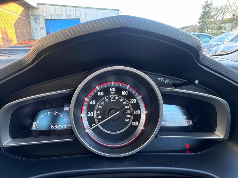 This 2016 Mazda3 SKYACTIV-D SE-L Nav presents an exceptional opportunity with its remarkably low mileage of just 63, 260 miles, especially for a vehicle of its age, and having had only two owners. This particular Mazda3 is equipped with a 1.5 litre diesel engine, meeting Euro 6 emission standards, and comes with a clear vehicle history check. Inside, you'll find integrated Bluetooth for seamless connectivity, dusk sensing headlights that automatically illuminate, and heated front seats with three stage settings for comfort in all conditions. Parking is made easier with rear parking sensors, and the dual zone climate control air conditioning ensures a pleasant cabin temperature for all occupants.This Mazda3 SKYcdot-D SE-L Nav stands out with its impressive fuel economy, achieving an outstanding 74 miles per gallon, which indicates it is more economical than many other similar vehicles. Furthermore, its low CO2 emissions and low insurance group highlight its cost effectiveness for everyday driving, making it a sensible choice for many drivers..