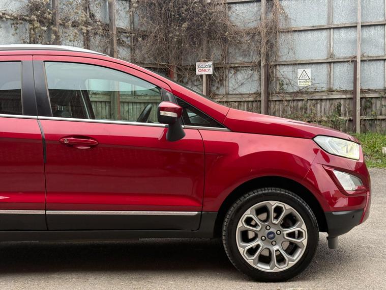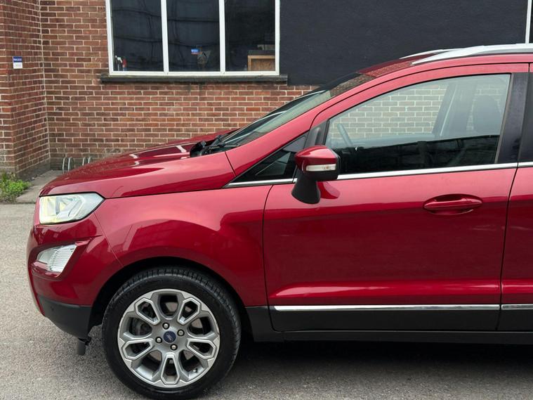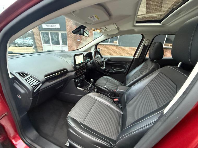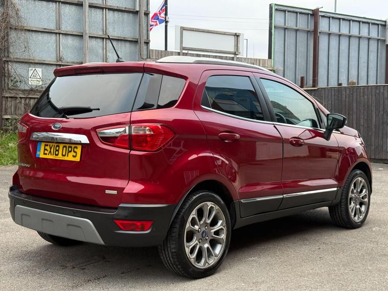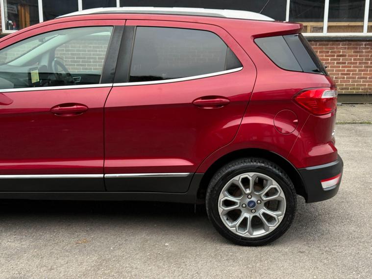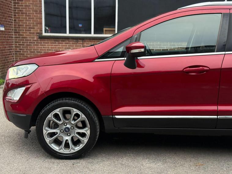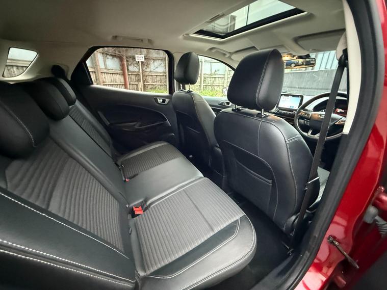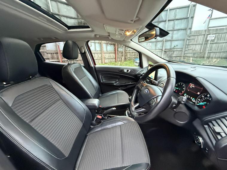 Discover this 2018 Ford EcoSport T Titanium, a stylish and practical compact SUV that offers a refined driving experience. This Euro 6 compliant model boasts a responsive 1.0L petrol engine, ensuring a good balance of performance and efficiency. Inside, you'll find a host of desirable features designed for comfort and convenience, including a power opening sunroof, rear privacy glass for added seclusion, and Electronic Automatic Temperature Control for perfect cabin climate. The Ford DAB Navigation System with Ford SYNC3 is a standout, offering seamless integration with Android Auto and Apple CarPlay, alongside Bluetooth connectivity for calls and music. Automatic headlights further enhance the driving experience, adapting to changing light conditions.This Ford EcoSport T Titanium is designed to impress with its impressive fuel economy, achieving up to 53 mpg, which indicates it is more economical than many similar vehicles. Its low CO2 emissions also highlight its environmental consideration. These factors, combined with its comprehensive feature set and the reliable Ford brand, make this EcoSport a compelling choice for those seeking a well equipped and efficient vehicle for everyday use..