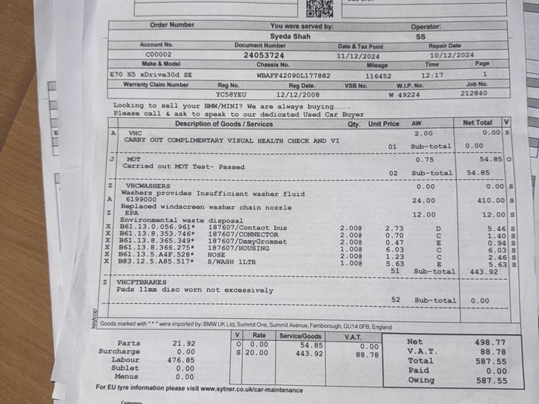 A&A MOTORS LIMITED delighted to offer this stunning 2008 BMW X5 d SE offers a compelling blend of performance and practicality, boasting a recent service and replaced front brakes pad + replaced front wheel bearing in December 2025 at 124, 365 miles and a clear vehicle history check. This Four Wheel Drive model features a robust 3.0L Diesel engine, providing an impressive 0-62mph acceleration in just 8.1 seconds. Inside, you'll find luxurious Nevada Black leather upholstery, a SatNav Professional system, and a Media Pack for your entertainment needs. The electrically adjustable tilt and slide panoramic glass sunroof adds a sense of spaciousness and light to the cabin.The X5 d SE is designed for those who appreciate a refined driving experience and ample utility. Its substantial 3500 kg towing weight makes it a capable companion for various needs, while the large boot space ensures you have plenty of room for luggage or equipment. This particular model benefits from a low insurance group, offering potential cost savings. A 12 month MOT will be provided on purchase, and a 1 month warranty is included for your peace of mind, indicating its readiness for the road ahead..