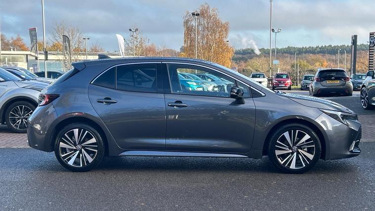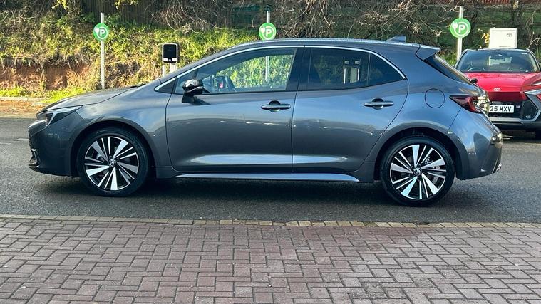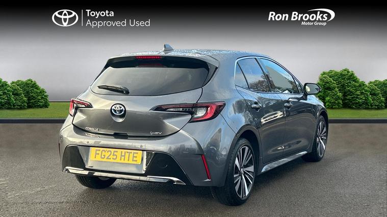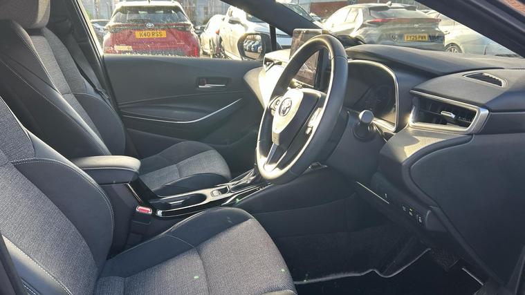This 2025 Toyota Corolla VVT-h Design is a Toyota manufacturer approved vehicle, boasting a full service history and a 12 month warranty for your peace of mind. This one owner vehicle features a 1.8L petrol hybrid engine, meeting Euro 6 emission standards. The Design trim level includes advanced technology such as LED headlights, Toyota Safety Sense with adaptive cruise control and speed limiter, blind spot monitoring with safe exit assist, and auto headlights.Experience impressive efficiency with a fuel economy of 61 mpg, alongside low CO2 emissions and a low insurance group, indicating this Corolla is more economical to run than many similar vehicles. Its acceleration from 0-62mph in 9.1 seconds offers responsive performance, while the large boot space provides practicality for everyday needs..