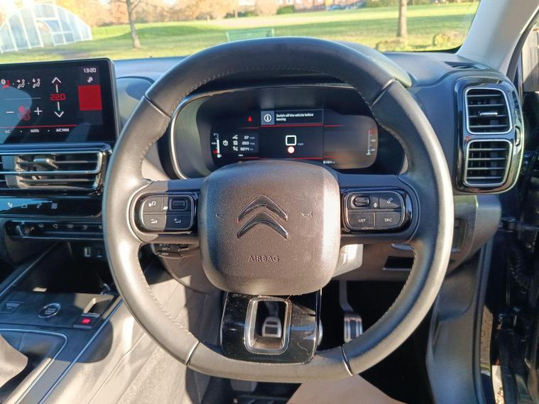This 2022 Citroen C5 Aircross Sense Plus is a Citroen manufacturer approved vehicle, boasting a full service history and a clear vehicle history check, ensuring peace of mind for its next owner. This one owner vehicle is a Euro 6 compliant 1.2 litre petrol model, offering an impressive 49 mpg fuel economy. It comes equipped with automatic headlights that feature welcome and goodbye lighting, along with LED headlights for enhanced visibility. Inside, you'll find Citroen Connect Play, compatible with both Android Auto and Apple CarPlay, and a keyless entry and start system for ultimate convenience. The acoustic laminated windscreen includes rain and brightness sensors, further contributing to a comfortable driving experience.The C5 Aircross Sense Plus stands out with its low CO2 emissions, indicating a more environmentally conscious choice compared to similar vehicles. Its large boot space provides ample room for luggage or shopping, making it a practical option for families or those who need extra capacity. This vehicle also comes with 12 months of warranty and a 12 month MOT provided on purchase, offering excellent value and reassurance..