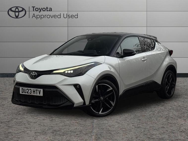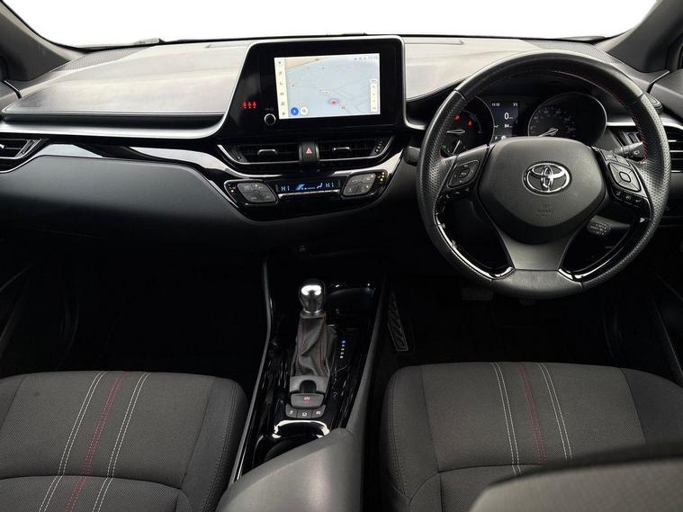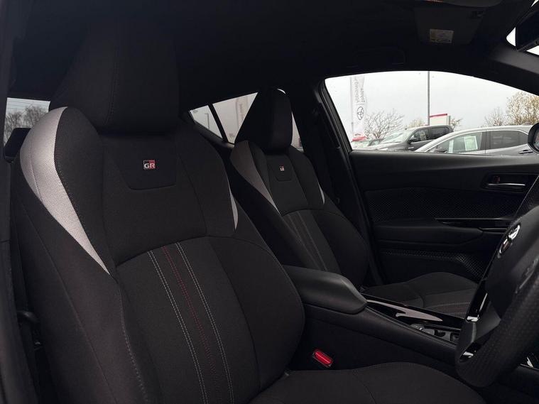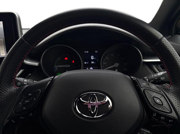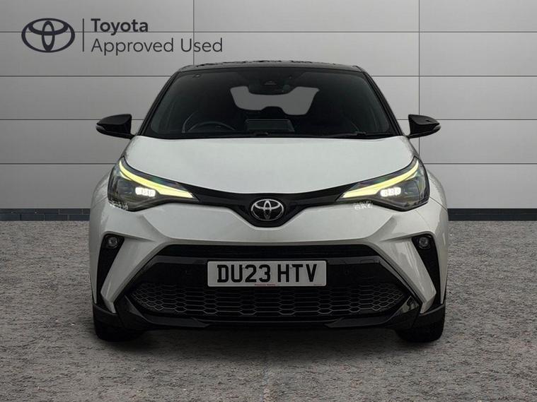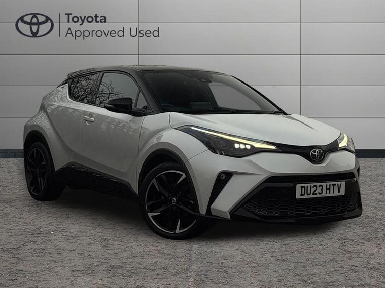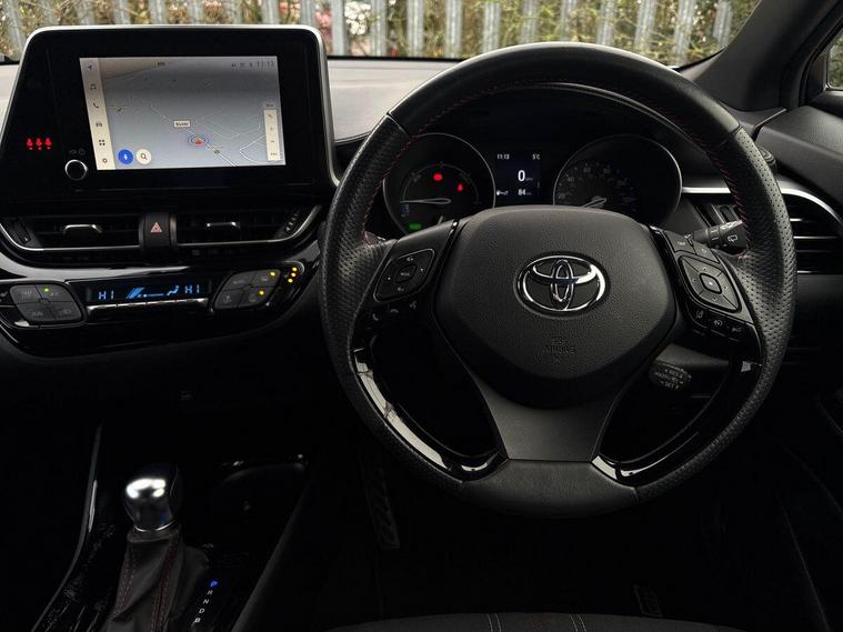 This 2023 Toyota C-HR VVT-h GR SPORT is a Toyota manufacturer approved vehicle, boasting a full dealership service history and having had only one owner. It features a 1.8L petrol hybrid engine, meeting Euro 6 emission standards, and comes with a 12 month warranty for your peace of mind. The MOT is valid until April 2026, ensuring its roadworthiness. Notable features include the convenient Parking Pack with front and rear sensors, auto and adaptive LED headlights, and adaptive cruise control. Inside, you'll appreciate the comfort of heated driver and front passenger seats.This GR SPORT model offers excellent efficiency, achieving a highlight of 58 mpg, and benefits from a low CO2 emission rating, making it an environmentally conscious choice. Its low insurance group rating also indicates that running costs are kept to a minimum, setting it apart from many similar vehicles. This combination of advanced technology, economical hybrid performance, and comprehensive provenance makes this C-HR a compelling option..