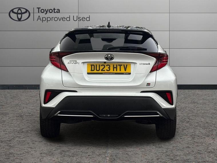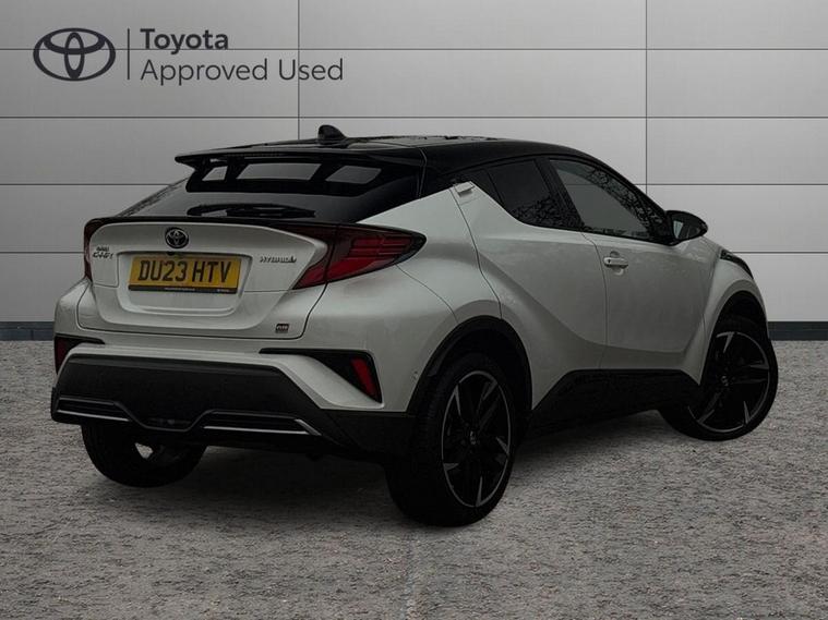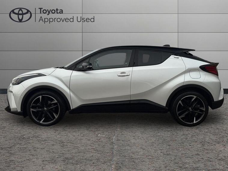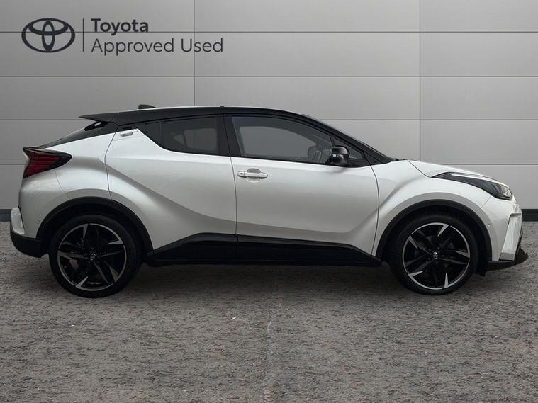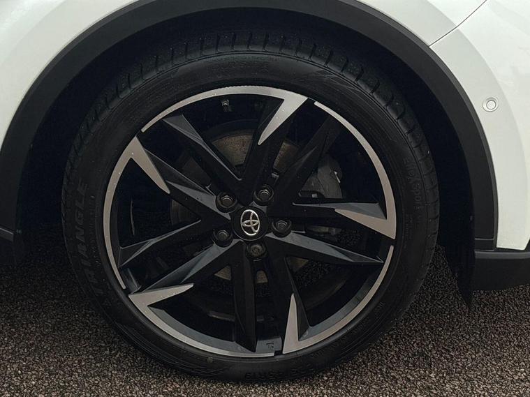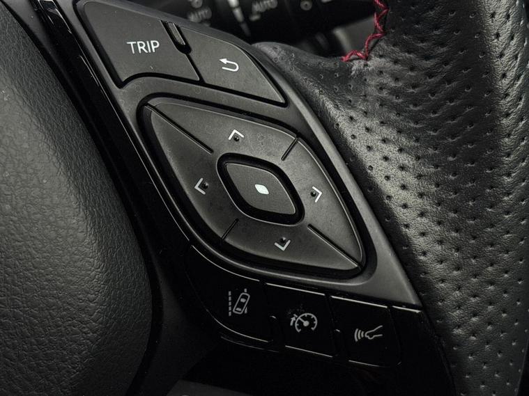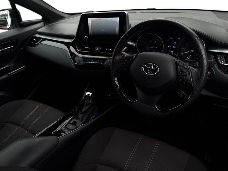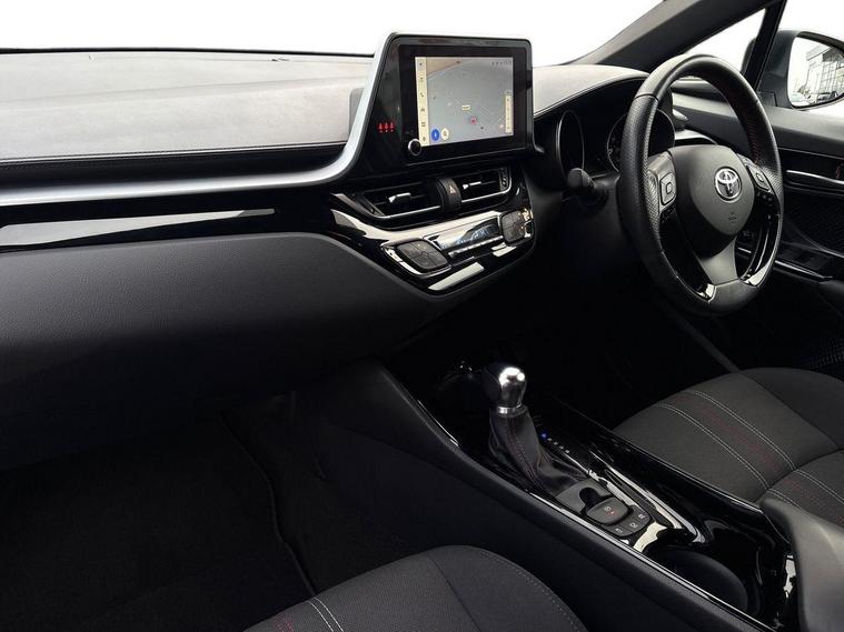 This 2023 Toyota C-HR VVT-h GR SPORT is a Toyota manufacturer approved vehicle, boasting a full dealership service history and having had only one owner. It features a 1.8L petrol hybrid engine, meeting Euro 6 emission standards, and comes with a 12 month warranty for your peace of mind. The MOT is valid until April 2026, ensuring its roadworthiness. Notable features include the convenient Parking Pack with front and rear sensors, auto and adaptive LED headlights, and adaptive cruise control. Inside, you'll appreciate the comfort of heated driver and front passenger seats.This GR SPORT model offers excellent efficiency, achieving a highlight of 58 mpg, and benefits from a low CO2 emission rating, making it an environmentally conscious choice. Its low insurance group rating also indicates that running costs are kept to a minimum, setting it apart from many similar vehicles. This combination of advanced technology, economical hybrid performance, and comprehensive provenance makes this C-HR a compelling option..