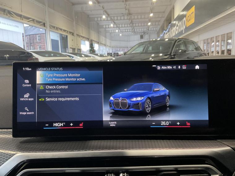 This 2023 BMW i4 M50 presents an exceptional ownership proposition with its remarkably low mileage of just 22, 358 miles for its age. As a fully electric vehicle, it offers a sophisticated driving experience with its Four Wheel Drive drivetrain. This particular model boasts a substantial 84 kWh battery, providing a maximum range of 318 miles when new, ensuring you can travel further on each charge. Charging at home with a 7kW charger will take approximately 12 hours and 30 minutes for a full charge, while rapid public charging can replenish the battery from empty to 80% in as little as 34 minutes. The BMW i4 M50 is designed for both performance and practicality. Its acceleration is truly impressive, achieving 0-62mph in a mere 3.9 seconds, a figure that highlights its dynamic capabilities compared to many other vehicles. Furthermore, this electric saloon offers generous boot space, making it a versatile choice for everyday use and longer journeys. The impressive 318 mile maximum range when new also sets it apart, offering peace of mind for those seeking an electric vehicle with extensive travel potential..