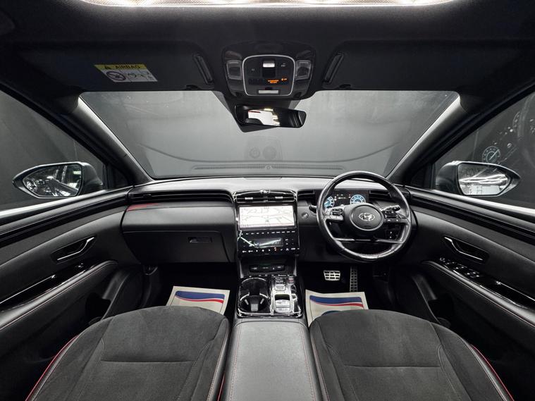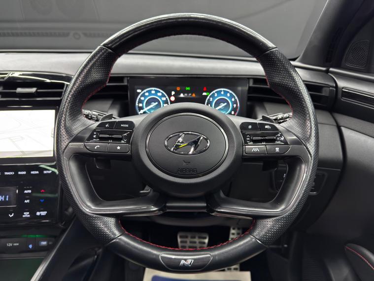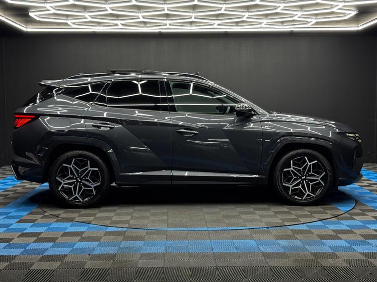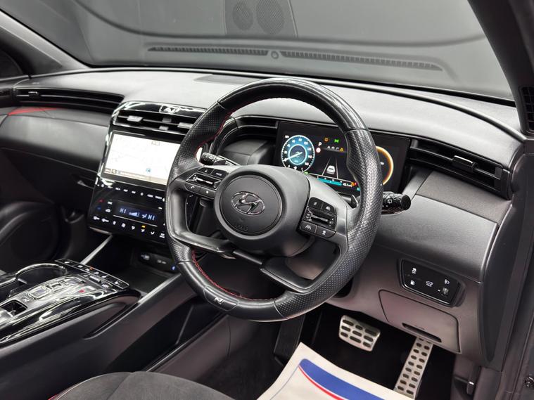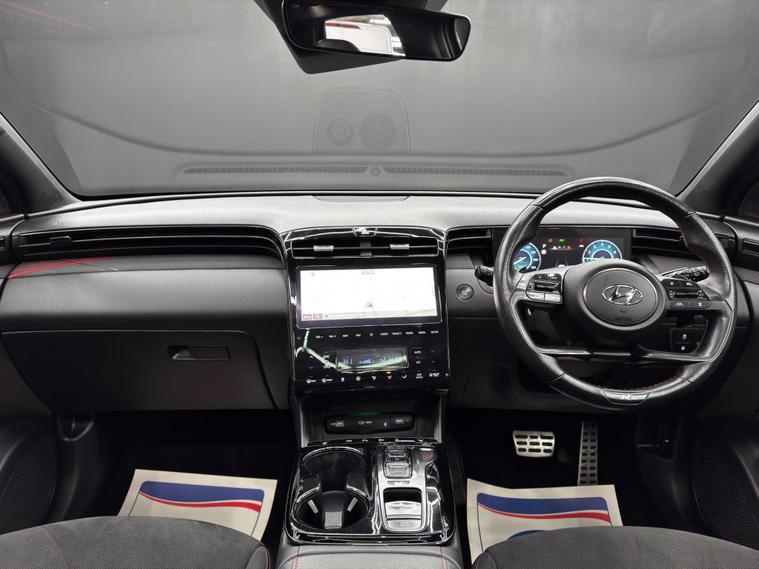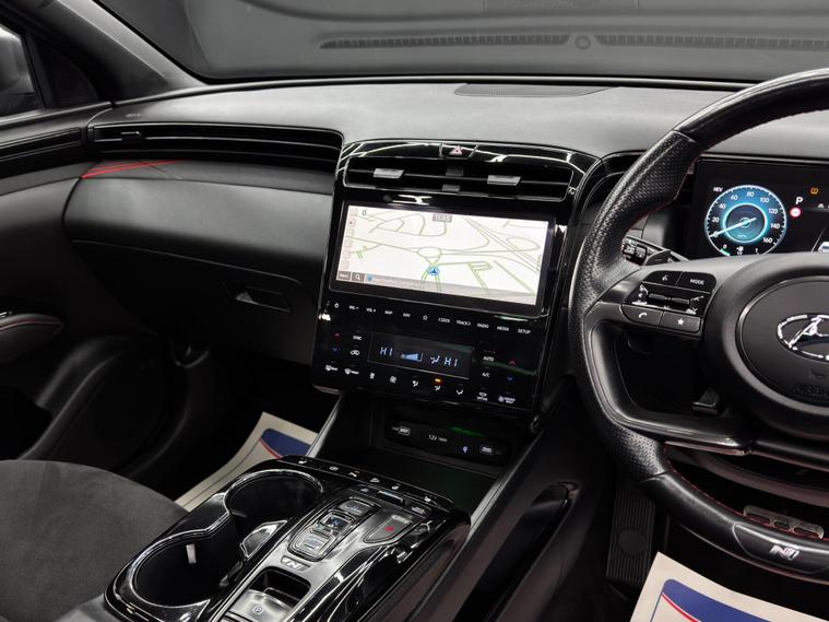 Here at Motor Gurus we are delighted to offer a Hyundai TUCSON 1.6 T-GDi 13.8kWh N Line S Auto 4WD. This vehicle is in immaculate condition inside and out. This specific vehicle is finished in a METALLIC GREY and is contrasted by a BLACK LEATHER/SUEDE interior. This vehicle comes included with: FRONT & REAR PARKING SENSORS, REAR PARKING CAMERA, ELECTRIC TAILGATE, PRIVACY GLASS, SLIDING GLASS PANORAMIC ROOF, PERFORATED GRIPPED LEATHER STEERING WHEEL, KRELL SOUND SYSTEM, REAR PASSENGER WINDOW SUNSHADES, CRUISE CONTROL, AUTO HOLD, DRIVING MODES, TWIN CUPHOLDERS, FRONT HEATED SEATS, HEATED STEERING WHEEL, CLIMATE CONTROL, SAT NAVIGATION, DAB RADIO, BLUETOOTH AUDIO, TELEPHONE CONNECTIVITY, APPLE CARPLAY, SPPED LIMIT/BLIND SPOT/LANE KEEPING ASSIST, AMBIENT LIGHTING, KEYLESS ENTRY/EXIT AND MUCH MORE! Our Hyundai TUCSON 1.6 T-GDi 13.8kWh N Line S Auto 4WD is a 1 OWNER FROM NEW and will also come provided with a 12 MONTH MOT as well as a FRESH OIL SERVICE before it leaves our premises (OTR)..