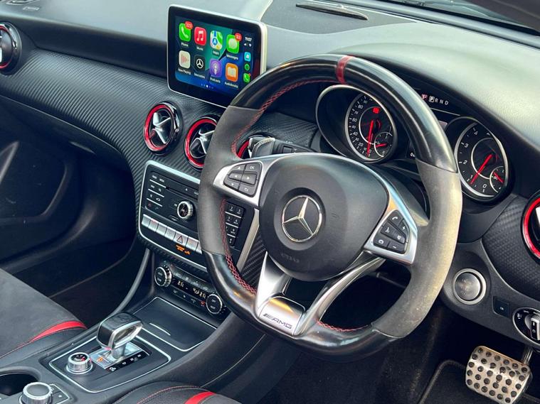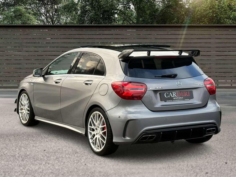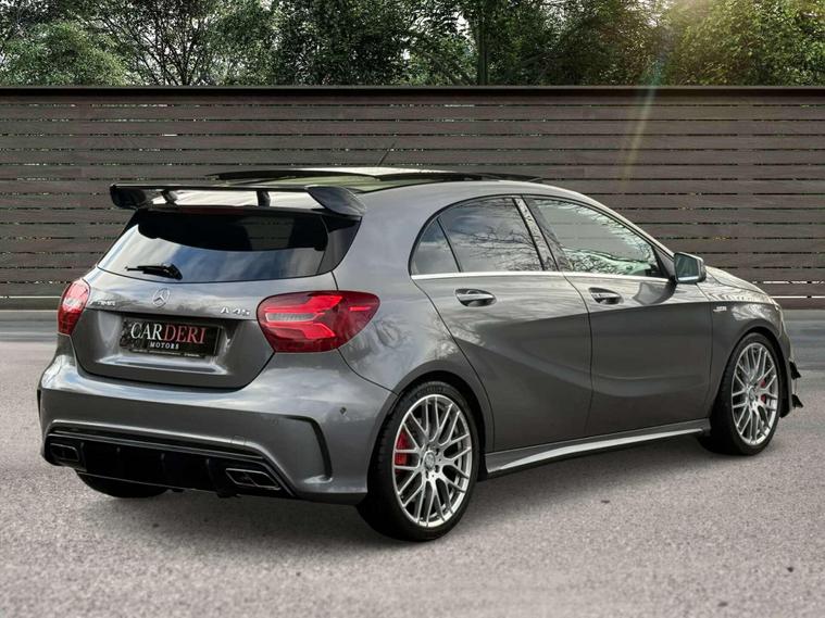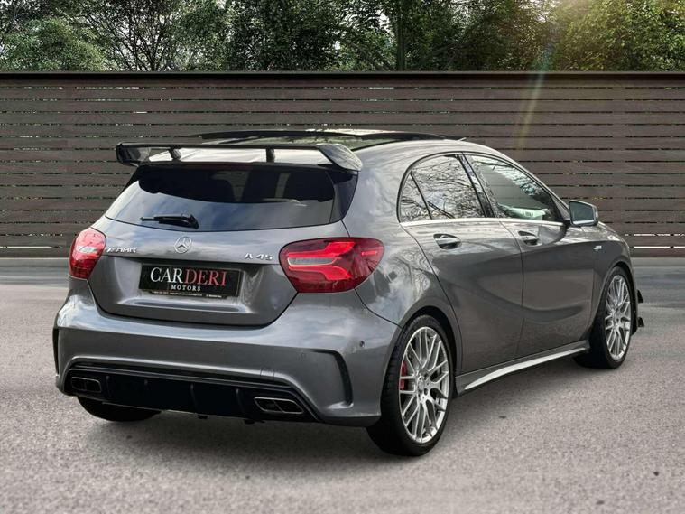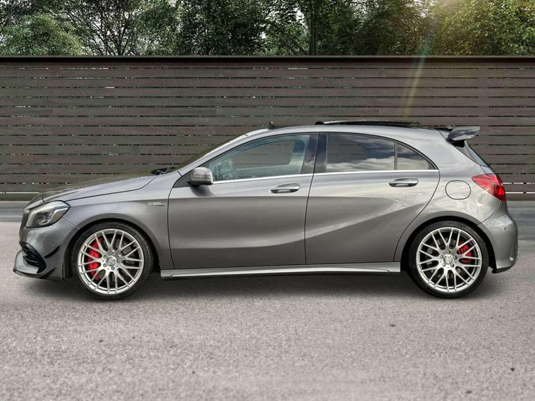 Introducing this beautifully specified Mercedes-AMG A45 finished in the sleek Mountain Grey, enhanced with the rare and highly desirable AMG Aerodynamics Package. With its deeper front apron, extended aero elements and sculpted rear diffuser, this A45 delivers a far more commanding and motorsport-inspired presence on the road.Equipped with the sought-after AMG Dynamic Plus Package, this example unlocks Race Mode and sharper drivetrain characteristics, giving you genuine AMG performance at your fingertips. Complementing this is the AMG Ride Control Sports Suspension with Selective Damping, allowing you to switch between a compliant daily setup and a more focused, dynamic response when you want to push on.Privacy Glass finishes the exterior with a clean, premium look that suits the car’s aggressive lines perfectly.A superbly specced A45 for the enthusiast who wants the right packages — performance, handling and road presence — all wrapped in a truly standout colour..