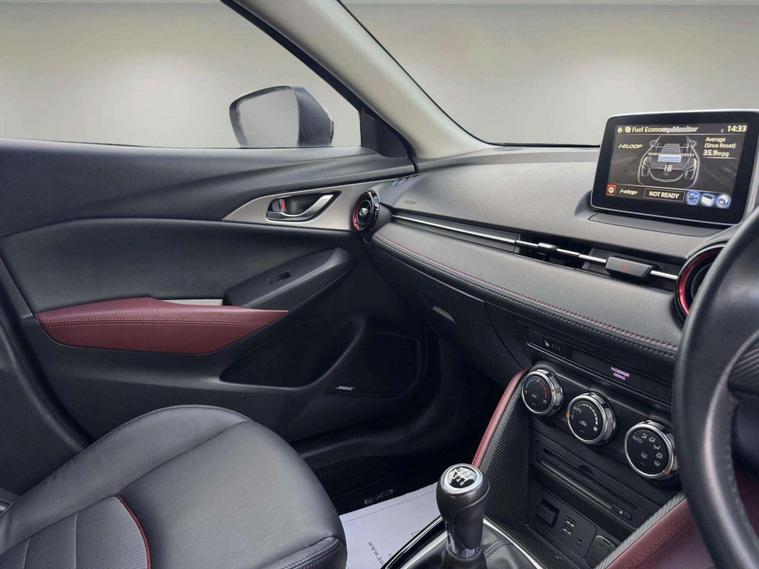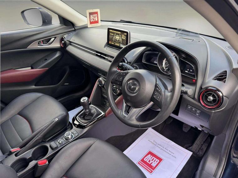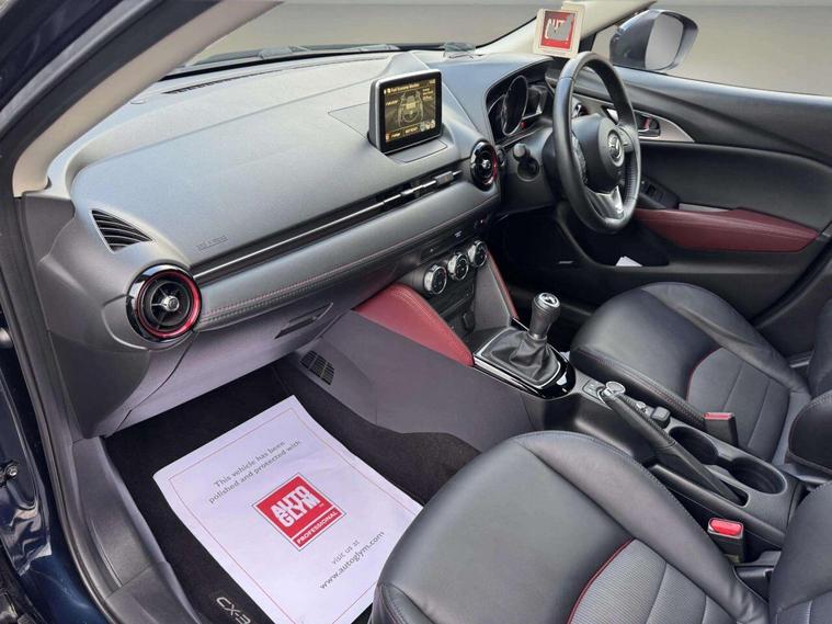 This 2016 Mazda CX-3 SKYACTIV-G Sport Nav boasts a single owner and remarkably low mileage for its age, having covered just 56, 000 miles. This stylish compact SUV features a responsive 2.0 litre petrol engine paired with a capable four wheel drive system, ensuring confident handling in various conditions. It meets Euro 6 emissions standards and comes with an MOT valid until November 2026, with a clear vehicle history check for your peace of mind. A 3 month warranty is also included.The Sport Nav trim level enhances your driving experience with a premium BOSE sound system for exceptional audio quality, and LED headlights that provide excellent visibility. Convenience is key with dusk sensing automatic headlights and a reversing camera to assist with parking. For a truly modern touch, this CX-3 includes a Head Up Display, projecting vital information directly into your line of sight. Its impressive 0-60mph acceleration of 8.7 seconds and low insurance group highlight its efficiency and affordability compared to similar vehicles, making it a well rounded choice..