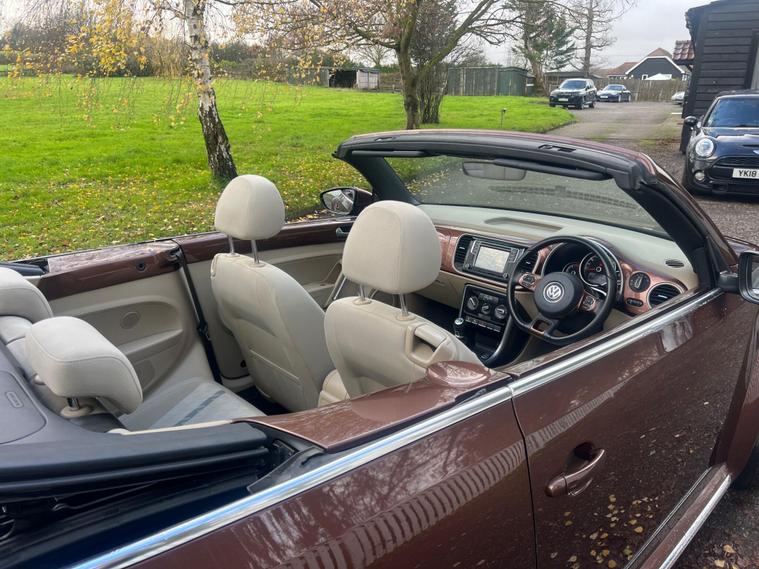 By appointment onlyDiscover the rare spec & fantastic VW Beetle at Woodland Prestige! Finished in stunning metallic bronze with beige cloth interior. Includes fresh service with Cam/timing beltClean health check and new MOT too. Stunning colour, nice Spec - petrol manual and ULEZ CompliantBluetooth Audio & media 18 inch alloy wheelsAir conditioning Sports multifunctional steering wheelTonneau Cover This extraordinary beetle boasts a plethora of options, making it an absolute head-turner. It comes with full VW service history and has been meticulously cared for with good mileage. Visit our Website - dealer's website Nationwide Delivery AvailablePart Exchange WelcomeFinance from 9.9% APRYour purchase includes:6-Month Extendable WarrantyFresh 12-Month MOTFresh ServiceService history10/04/201992692613 miles (Main dealer)23/06/201992692613 miles (Main dealer)12/11/201992692613 miles (Main dealer)23/02/201992692613 miles (Main dealer)12/03/201992692613 miles (Main Dealer) Experience peace of mind with your purchase from us. Woodland Prestige is a 5-star rated business on Google and AutoTrader. We also provide:12-Months AA Breakdown CoverDrive-Away InsuranceAA Assured SchemeBuy with confidence, and explore financing options on our website: dealer's website Only - Enquire today and reserve your dream car!''.