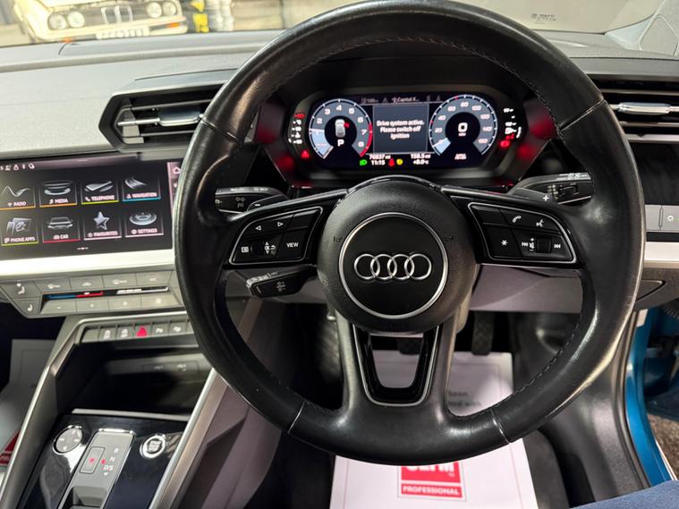 Dorset Prestige Cars are proud to present you this 2021 Audi A3 1.5 TFSI 35 Technik Sportback S Tronic, Finished in Atoll Blue with Grey cloth.Exterior = 16 inch alloy wheels, Reversing camera, Front and rear parking sensors, Daytime running lights, Interior = Bang & Olufsen Audio, Satellite navigation, Virtual cockpit, Automatic headlights, Cruise control, Bluetooth media stream and phone preparation, DAB radio, Apple CarPlay, Android auto, Multifunction steering wheel, Heated seats, Heated rear screen, Park assist, 2 x USBC Sockets, Cupholders, 12 V socket, Isofix seatsService history = 09/05/2022@18243 Audi, 04/07/2023@36844 Audi, 03/09/2024@56955 Audi. We will service before it leaves. This car comes with 2 x remote keys and original book pack with manuals…Nationwide Delivery Trailered or Driven you Choose, 6 Months Warranty+ Extended warranties available 12 Months AA Breakdown....This vehicle comes with 6 months Warranty for full peace of mind (up to 36 month extension available), 3 or 5 year ceramic coating available, train station collection service, nationwide delivery available on all vehicles. Part Exchange welcome. Open Monday to Saturday ***Viewing By Appointment Only*** All Major Credit and Debit Cards Accepted. Please visit our website for more information on our services and to view our other vehicles currently in stock. Secure this vehicle today for £500 deposit T&C’s Apply! All our vehicles are HPI clear and have been through our workshop for a full health check for peace of mind. See our 5***** reviews , Buy with confidence through us. Find us on Facebook Instagram and YouTube! View our full range of cars on our website and Autotrader profile..