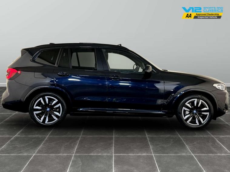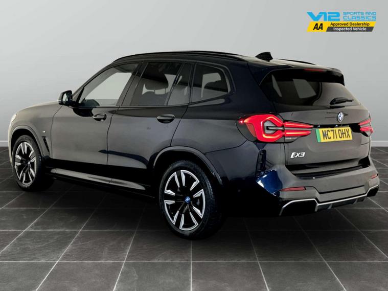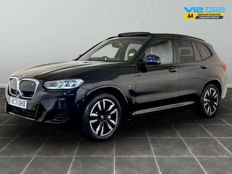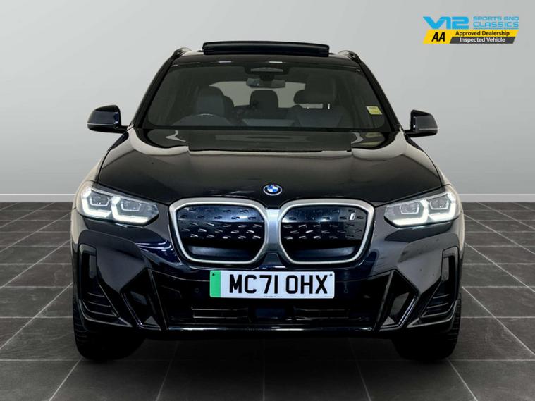 Introducing the Bmw Ix3 80kWh M Sport SUV – where cutting-edge innovation meets unparalleled luxury. This stunning electric vehicle, with just 40, 150 miles on the clock and only one previous owner, is your gateway to a sustainable yet exhilarating driving experience.Draped in an elegant Carbon Black finish, the Bmw Ix3 exudes sophistication and style. Its sleek silhouette is complemented by model-specific design elements that make it stand out on any road. The fully electric towbar adds a touch of practicality, ensuring you're ready for any adventure, whether it's a weekend getaway or a cross-country journey.Step inside to discover the epitome of comfort and craftsmanship. The interior is adorned with Vernasca Leather in Black, accentuated by striking blue contrast stitching, creating an atmosphere of refined elegance. Every journey becomes a first-class experience, with advanced technology and intuitive controls at your fingertips.Under the bonnet, the Bmw Ix3 boasts an impressive 286 ps, delivering a dynamic performance that is both powerful and efficient. As an electric vehicle, it offers a smooth, quiet ride while contributing to a greener future.Don't miss the opportunity to own this exceptional Bmw Ix3. It's more than just a car; it's a statement of style, innovation, and responsibility. Visit us today and experience the future of driving.For peace of mind this vehicle has only had 1 registered owner and has completed a multi point AA dealer's website finance is also available.We are open 7 days a week and have more than 1500 cars to choose from.All our Euro 4 Petrol and Euro 6 Diesel vehicles meet the ULEZ standard.Vehicle specification can be found below. From time to time vehicles have manufacturer recalls notified. Please read our recall policy on our website for further information.''This vehicle comes with an AVILOO Battery Health Certificate - the global standard for EV battery testing. Full independent analysis confirms excellent battery condition with detailed State of Health assessment, cell-level checks, and accurate range data. Certificate included with purchase for your complete peace of mind and future resale value.''.