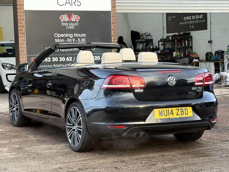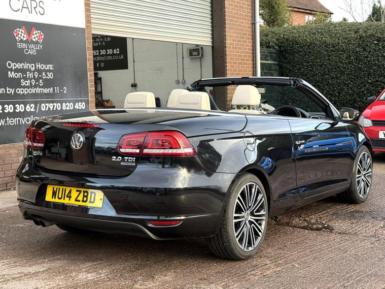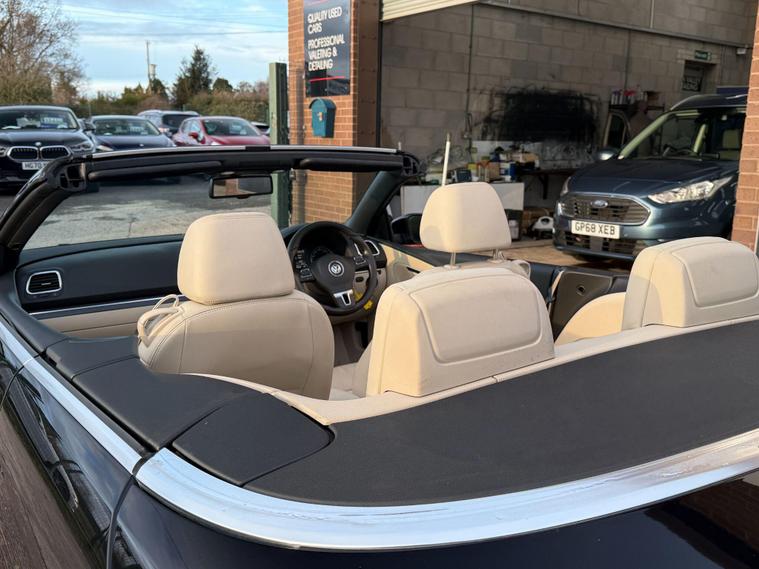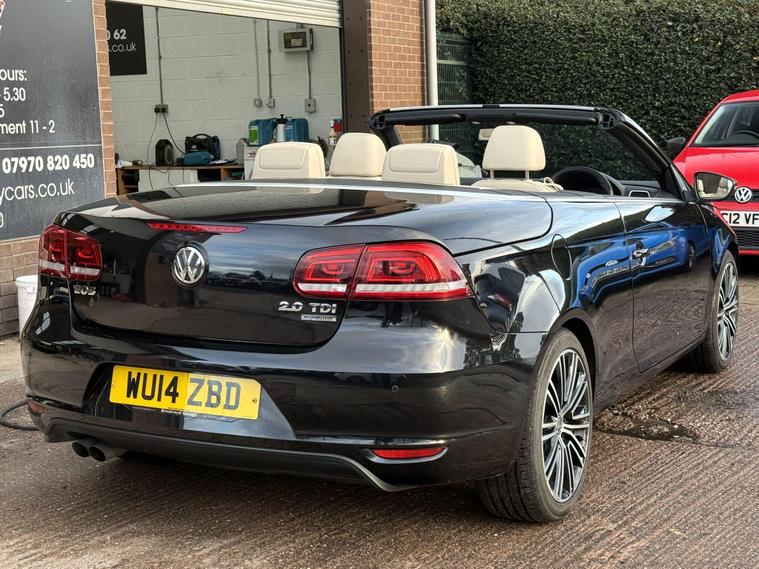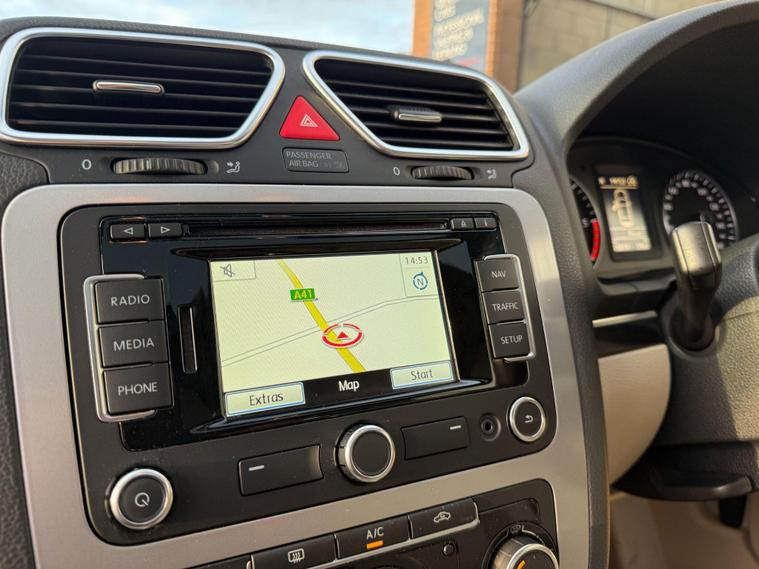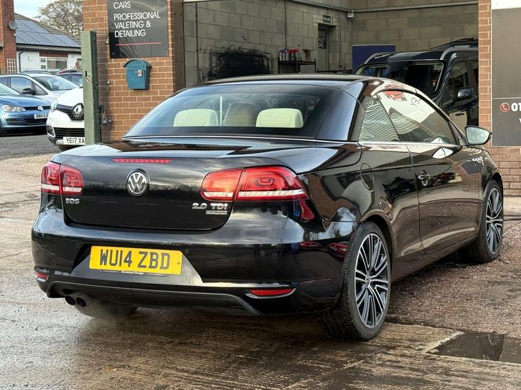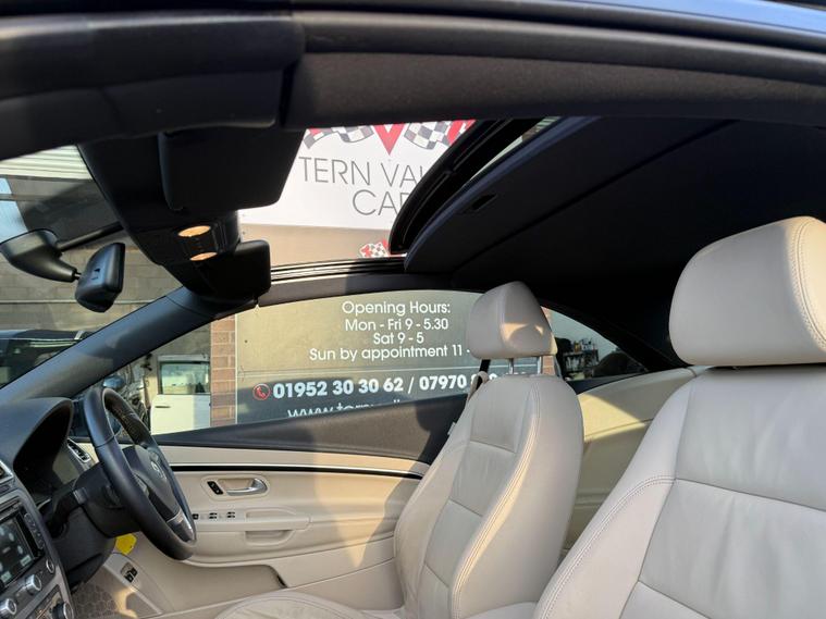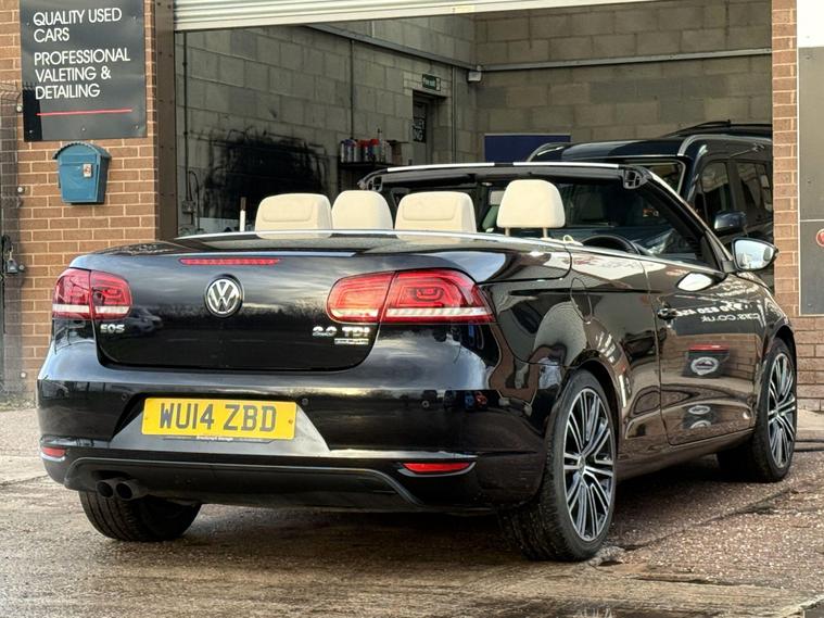 This stunning VW Eos TDI Sport DSG Auto finished in Deep Pearl Black Metallic with Corn Silk Nappa Leather presents an exceptional ownership proposition with its full service history and MOT valid until June 2026. This particular Eos, a 2.0 litre diesel model, has covered a modest 61, 500 miles, which is low for its age, and its last service was completed on 21st May 2025 at 59, 544 miles. DSG gearbox & paddle shift steering wheel. It comes equipped with desirable features including RNS 315 touch screen satellite navigation, Nappa leather upholstery in Corn Silk, heated seats, stylish 18 inch Vicenza alloy wheels, Bluetooth telephone preparation, and rear parking sensors for added convenience. Rear wind deflector in its original bag in the boot! Same retired owner since 2020, always garaged and in fabulous condition. A full service history with folder of paperwork, a much loved car and replaced with another one! Simply an excellent clean used car throughout and faultless to drive with all handbooks & 2 x keys. We sell with 6 Months Warrantywise Gold Warranty. 12 Months AA Breakdown Membership included. AA Driveaway 5 Day Insurance available - Only £44.99 NEED FINANCE? No Problem - SAF Registered. Simply click 'Apply for finance' on our website dealer's website We are a FCA registered dealership. Prime or subprime finance. Excellent finance rates starting from as low as 10.9% APR (Subject to status and terms and conditions) For any further information and details to view please contact David, who has over 50 years personal Motor trade experience! Delivery to your door is available, please ask for a quote.The Eos TDI Sport offers a compelling package, and its low insurance group rating is a significant advantage, indicating lower running costs compared to similar vehicles. The combination of its well documented provenance, including a full service history, and its notable features like the integrated navigation and premium leather interior, make this a well maintained and attractive option for those seeking a comfortable and stylish convertible..
