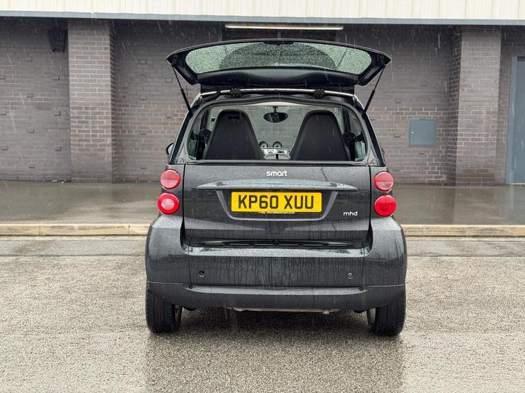 This 2010 Smart Fortwo MHD Passion is a remarkably low mileage example for its age, having covered just 62, 000 miles. It features a 1.0L petrol engine and comes in the desirable Passion trim. Inside, you'll find comfort and convenience with air conditioning that includes automatic temperature and climate control, ensuring a pleasant cabin environment no matter the weather. Enjoy an open and airy feel thanks to the panoramic glass roof, complete with a sunblind for added shade when needed. For your connectivity needs, a Bluetooth hands free system is integrated, allowing for safe and easy communication on the go.This Smart Fortwo stands out with its impressive fuel economy, achieving an excellent 66 miles per gallon, which is a significant advantage over many other vehicles. Furthermore, its low CO2 emissions contribute to a more environmentally conscious driving experience. These highlights demonstrate how this particular Smart Fortwo offers a more economical and efficient way to travel compared to similar cars on the market..