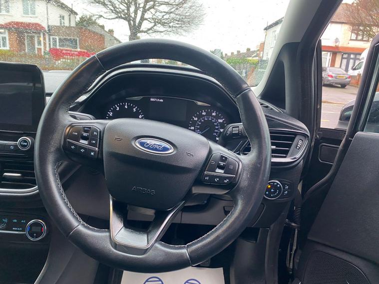This FORD FIESTA features popular small hatchback with economical running costs, Finished in attractive Black colour way, 2 owners, 2 keys, Low insurance group, August 2026 Mot, Road tax 195 pounds per year, Top spec including Alloys, Touch screen with NAV/Bluetooth DAB//USB, Climate Air con, Air con, Heated front and rear screen, E/windows, Remote c/locking, Cruise control, 6 Speed gear box, Multi airbags, HPI clear with certificate, No admin fees to pay, All Included in the price is a 12 month warranty with the first month given as unconditional, and then a further 11 months covering the most major parts, driveaway insurance available (Ts & Cs apply).