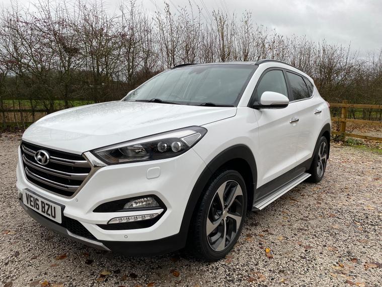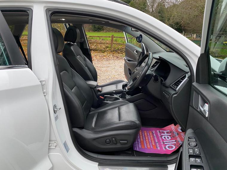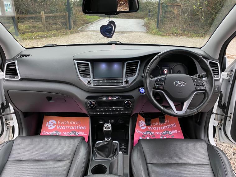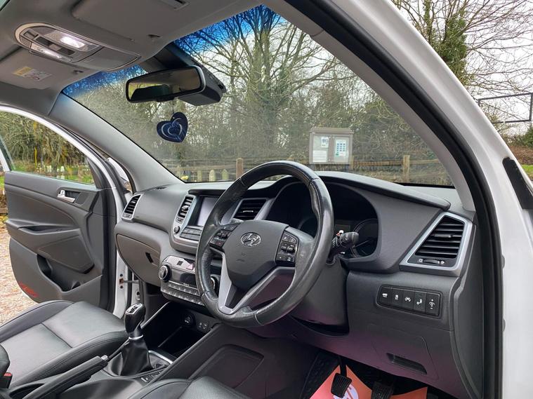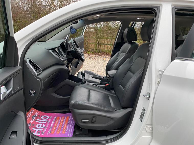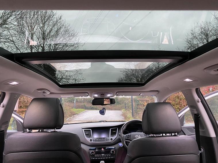 With only two owners and a full service history, this 2016 Hyundai TUCSON CRDi Premium SE presents a superb example of this popular family SUV. Boasting a 2.0L Diesel Euro 6 engine, it offers an impressive 59 mpg fuel economy, making it an economical choice for both daily commutes and longer journeys. The Premium SE trim level ensures a wealth of desirable features, including LED low beam headlights with automatic levelling and washers, a panoramic electric tilt and slide sunroof, and heated front seats for added comfort. Stay connected and navigate with ease thanks to the 8in touchscreen satellite navigation system, complete with traffic messaging, a reversing camera, and Bluetooth connectivity. This vehicle also benefits from a clear vehicle history check and a substantial towing weight of 2200 kg.This Hyundai TUCSON stands out with its low mileage of just 71, 000 miles for its age, coupled with an MOT valid until May 2026, offering peace of mind for the road ahead. Its low CO2 emissions and low insurance group highlight its cost effectiveness, while the large boot space provides ample practicality for all your needs. The inclusion of a 6 month warranty further enhances its appeal, ensuring you can drive away with confidence..