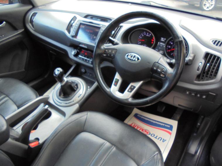 KIA SPORTAGE 2.0 CRDI KX-4 AWD EURO 5.THIS IS A ONE OWNER FROM NEW SPORTAGE IN METALLIC DARK GREY WITH CONTRASTING FULL BLACK LEATHER AND GREAT dealer's website WITH SAT NAV, PANORAMIC SUNROOF, BLUETOOTH CONNECTIVITY, FRONT AND REAR PARKING SENSORS AND REAR CAMERA, HEATED SEATS, CRUISE CONTROL, AIR CON, USB+AUX.MP3 AND 18 INCH DIAMOND CUT ALLOY WHEELS.VERY DESIRABLE 4X4 WITH FULL SERVICE HISTORY AND MOT UNTIL DECEMBER 2026 WITH FRESH SERVICE.12 MONTHS FREE AA BREAKDOWN COVER AND 18 MONTHS WARRANTY INCLUDED IN PRICE.FINANCE AVAILABLE P/X WELCOME..