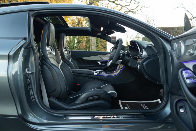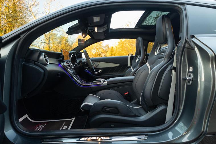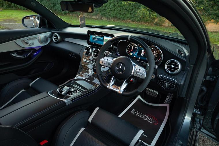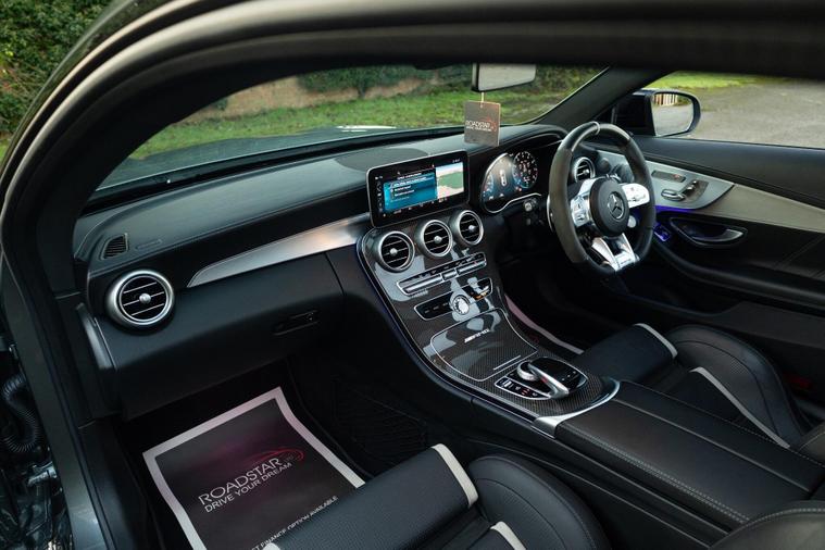 THIS BEAUTIFULLY SPECIFIED C63 COMES EQUIPPED WITH A CRISP HEADS-UP DISPLAY FOR ENHANCED DRIVING AWARENESS, THE FULL DRIVER ASSISTANCE PACKAGE WITH ADAPTIVE CRUISE CONTROL, LANE-KEEP ASSIST, AND ADVANCED SAFETY FEATURES, THE SOUGHT-AFTER AERO PACKAGE THAT ADDS AGGRESSIVE STYLING AND IMPROVED AERODYNAMICS, A 360° SURROUND-VIEW CAMERA SYSTEM FOR EFFORTLESS PARKING AND MANEUVERING, LIGHTWEIGHT AMG ALLOY WHEELS THAT SHARPEN BOTH HANDLING AND APPEARANCE, AND A STUNNING FULL CARBON-FIBER INTERIOR THAT ELEVATES THE CABIN WITH A PREMIUM, MOTORSPORT-INSPIRED FINISH..