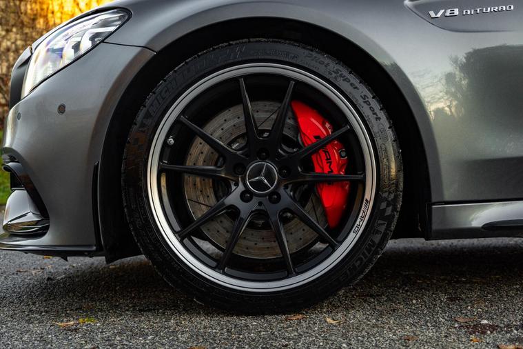 THIS MERCEDES-AMG C63 S FULLY LOADED, FINISHED WITH HIGH-GLOSS BLACK AND ALUMINIUM DOOR TRIMS, EQUIPPED WITH A RARE HEAD-UP DISPLAY AND DRIVING ASSISTANCE PACKAGE, SITTING ON 19” FRONT AND 20” REAR AMG PERFORMANCE FORGED WHEELS IN MATT BLACK WITH A HIGH-SHEEN RIM FLANGE, COMPLEMENTED BY THE AMG NIGHT PACKAGE, PRIVACY GLASS, HIGH-VALUE AMG AERODYNAMICS PACKAGE, AND AMG CARBON FIBRE INTERIOR TRIM, MAKING IT A HIGHLY DESIRABLE, PERFORMANCE-FOCUSED SPECIFICATION. CAR HAS UNDERGONE A DETAIL AND POLISH TO GIVE IT A TOP LEVEL FINISH..