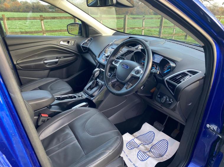 Discover this exceptional 2014 Ford Kuga TDCi Titanium X, boasting an incredibly low mileage of just 44, 000 miles for its age. This Four Wheel Drive model is equipped with a robust 2.0L Diesel engine and meets Euro 6 emissions standards. Inside, you'll find comfort and convenience with Dual Zone Electronic Automatic Temperature Control for air conditioning, and heated driver and passenger seats. The Titanium X trim also includes Bi-Xenon headlights with automatic activation, and Bluetooth hands-free phone connectivity for your convenience.This Ford Kuga stands out with its impressive fuel economy, achieving a remarkable 52 miles per gallon, which indicates its efficiency compared to similar vehicles. The combination of its low mileage, desirable Titanium X specification, and advanced features like the Xenon headlights and climate control make this Kuga a compelling choice for those seeking a capable and well-equipped SUV..