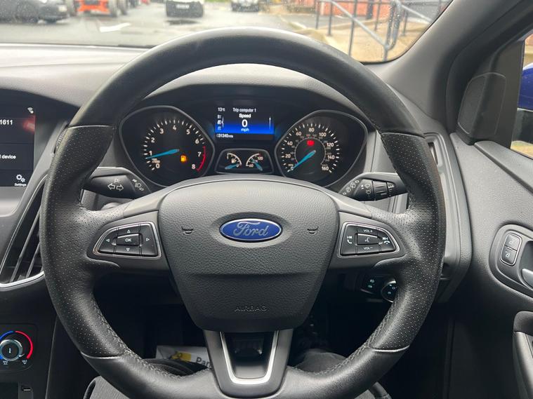This 2017 Ford Focus ST-Line T is a standout choice with its remarkably low mileage of just 31, 400 miles, making it a superb example for its age. This particular Focus is powered by an efficient 1.0 litre petrol engine and meets the Euro 6 emission standards. Inside, you'll find the convenient 8 inch TFT touchscreen featuring Ford SYNC2, which includes Bluetooth connectivity for seamless phone integration.You'll appreciate the impressive fuel economy of this Focus, achieving up to 60 miles per gallon, which is excellent for its class and indicates a more economical driving experience compared to many similar vehicles. Furthermore, this model boasts generous boot space, offering ample room for shopping or luggage, and its low CO2 emissions further highlight its efficiency and environmental consideration..