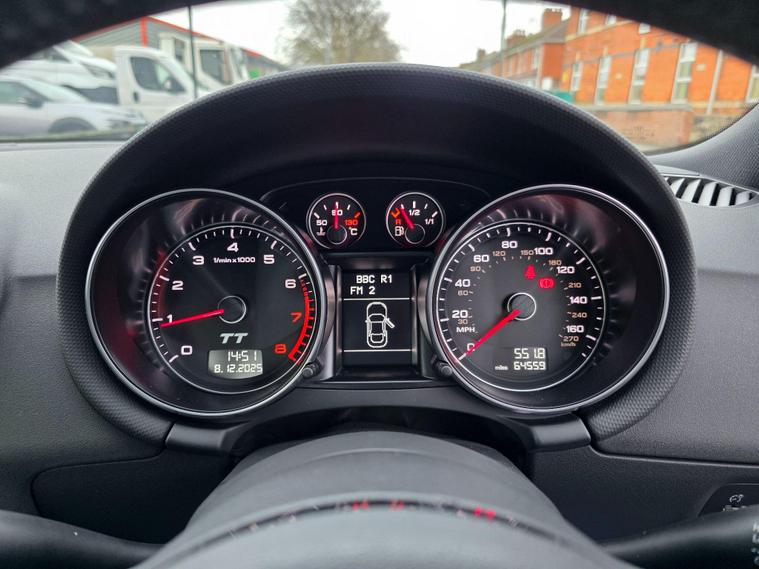 Boasting exceptionally low mileage for its age, this 2014 Audi TT TFSI S line presents a compelling proposition. With only three previous owners and a clear vehicle history check, this 1.8 litre petrol model has been well cared for, evidenced by its partial service history, with the last service completed on 5th December 2025 at 64, 558 miles. The car comes with 12 months MOT provided on purchase and a 3 month warranty for your peace of mind. Notable features include Mobile Telephone Preparation with a Bluetooth interface, Electronic Climate Control, and Bi-Xenon Plus headlights, ensuring a comfortable and convenient driving experience.This Audi TT TFSI S line stands out with its impressive fuel economy of 44 mpg, making it an economical choice for daily driving. Its low CO2 emissions and low insurance group further highlight its cost effectiveness compared to similar vehicles. The car's mileage of just 64, 559 miles is remarkably low for a 2014 model, suggesting it has been used sparingly and maintained with care..
