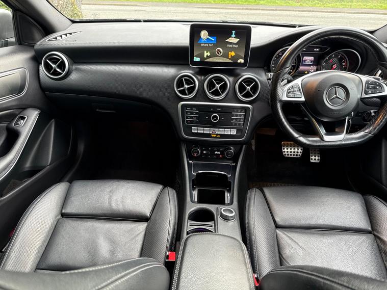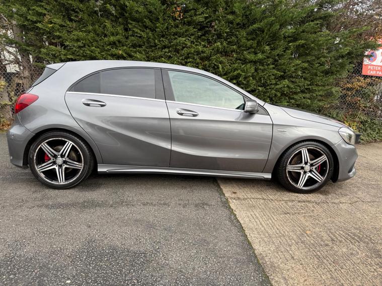 This 2015 Mercedes Benz A Class A250 AMG is a superb example of German engineering, boasting a powerful 2.0L petrol engine and a responsive four wheel drive system. As a Euro 6 compliant vehicle, it meets stringent emission standards, offering a more environmentally conscious drive. This AMG trim model comes equipped with a suite of advanced features designed to enhance your driving experience, including the comprehensive Driving Assistance Package which incorporates Blind Spot Assistance and Adaptive Cruise Control for added safety and convenience. You'll also benefit from the Selective Damping System for a refined ride, the COMAND Online satellite navigation system to guide your journeys, and Thermotronic automatic climate control for personalised comfort.The performance of this A Class is truly impressive, with a brisk 0-62mph acceleration time of just 6.3 seconds, demonstrating its sporty capabilities. This quick acceleration, combined with the sophisticated technology and the generous boot space, sets this Mercedes Benz apart from other vehicles in its class. The inclusion of Bluetooth connectivity ensures you can easily stay connected on the go, making this A250 AMG a well rounded and desirable premium hatchback..