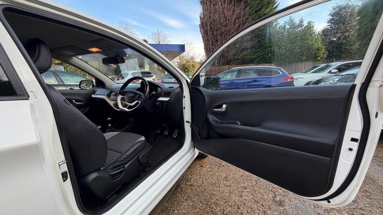 This 2015 Kia Picanto offers excellent value with only two previous owners and a partial service history. This White trim model is equipped with a responsive 1.25L petrol engine and comes with a 3 month warranty for your peace of mind. You will also receive 12 months MOT upon purchase, ensuring its roadworthiness. Notable features include automatic headlight control, a smart entry system for keyless entry, and Bluetooth connectivity for both music streaming and voice recognition. For your comfort, it also boasts automatic air conditioning with climate control.This Kia Picanto stands out with its impressive fuel economy, achieving up to 63 miles per gallon, which is better than many other vehicles in its class. Its low CO2 emissions further contribute to its economical running costs. Additionally, its low insurance group rating means you can expect more affordable insurance premiums, making this a very cost effective choice for everyday driving..