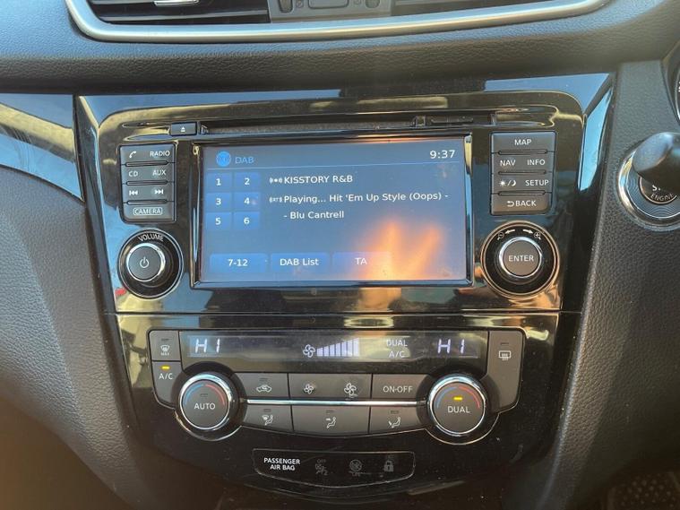 This 2015 Nissan Qashqai DIG-T n-tec+ boasts a clear vehicle history and has had only two owners, offering peace of mind. Powered by an efficient 1.2 litre petrol engine, this n-tec+ model comes equipped with a suite of intelligent features designed for convenience and safety. You'll appreciate the Around View Monitor, providing a 360 degree bird's eye view for effortless parking assistance, complemented by rear parking sensors. The Intelligent Key allows for keyless entry, while Bluetooth integration keeps you connected on the go. Enjoy an open and airy cabin with the fixed panoramic glass roof.This Nissan Qashqai stands out with its impressive fuel economy, achieving up to 50 miles per gallon, and benefits from low CO2 emissions, making it a more economical choice than many similar vehicles. Its low insurance group rating further contributes to lower running costs. These highlights demonstrate how this Qashqai offers a compelling blend of practicality, technology, and cost effectiveness for everyday driving..