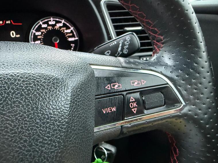 - Steering Wheel - Flat-Bottomed Perforated Leather with Red Stitching and FR Logo