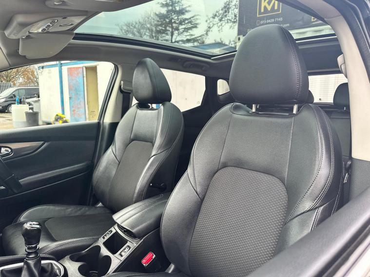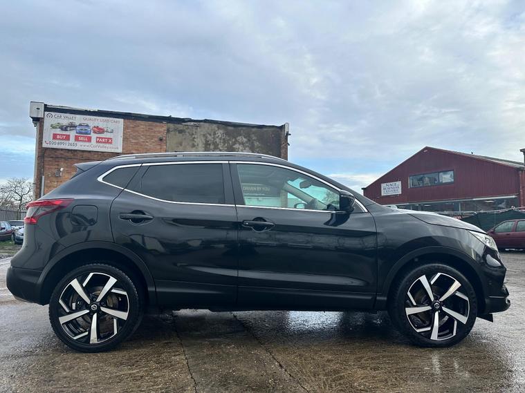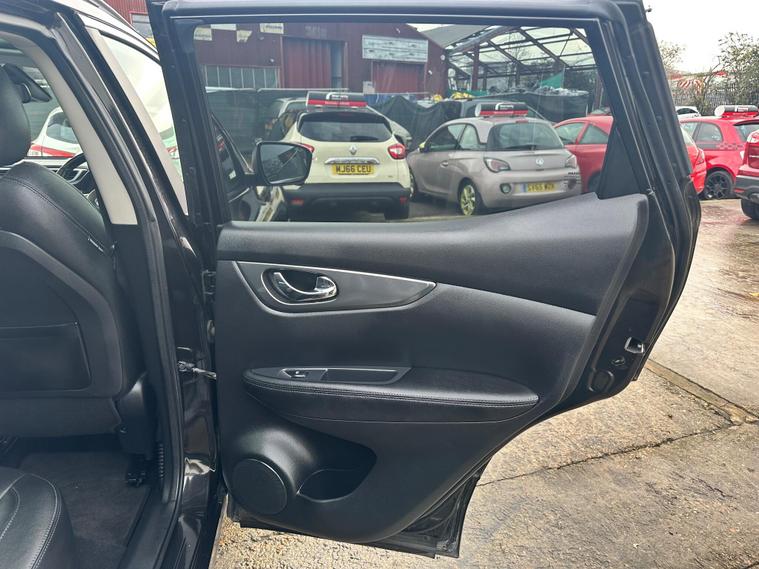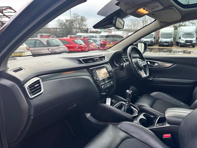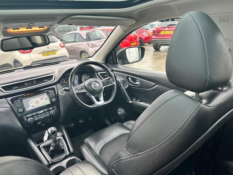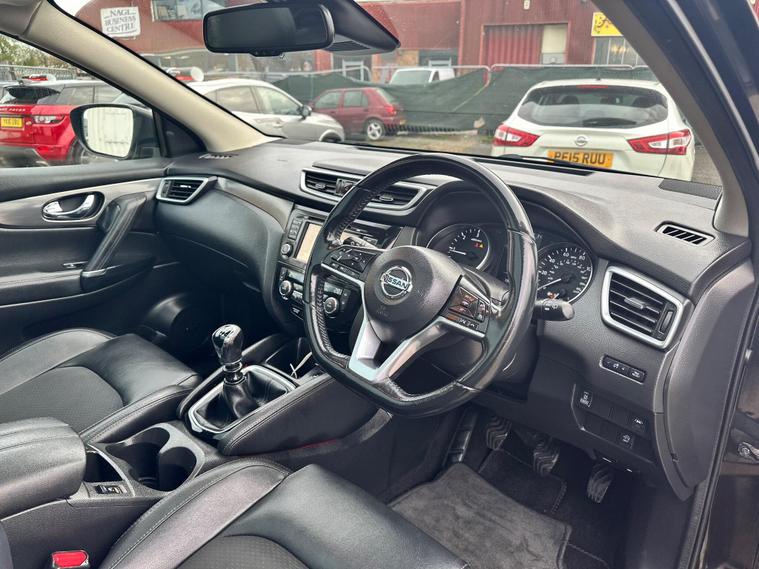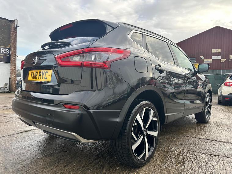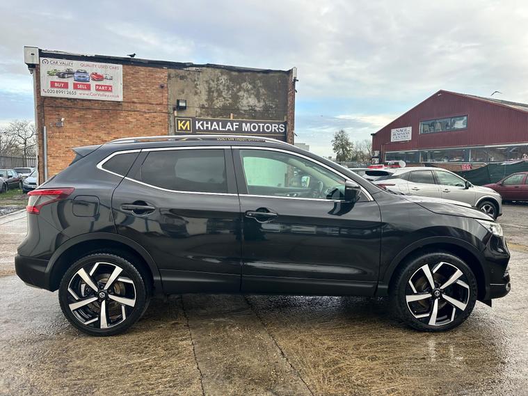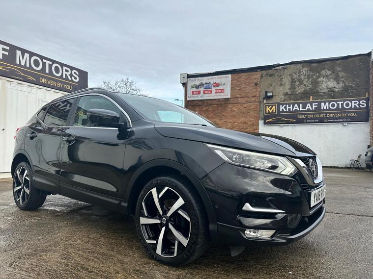 RESENTING THIS PRETTY CHEAP BLACK NISSAN QASHQAI TEKNA FOR SALE. PERFECTLY CLEAN BODY INTERIOR AND EXTERIOR. HAS PANORAMIC GLASS ROOF. PRIVACY GLASS. 360 DEGREES CAMERA & PARKING SENSORS. SAT-NAV. BLUETOOTH. ELECTRIC DRIVER SEAT.. and more in specs. MECHANICALLY PERFECT NO ISSUES. JUST BEEN SERVICED. NEW OIL- OIL FILTER-AIR FILTER. FRESH MOT NO ADVISORIES. HPI CLEAR NO ANY ACCIDENTS. 2 KEYS. ONLY LATEST SERVICE INVOICE PRESENT. 3 MONTH WARRANTY ON ENGINE AND GEARBOX THROUGH OUR COMPANY. 6 MONTH WARRANTY AVAILABLE. 12 MONTH FREE AA BREAKDOWN COVER. FOR MORE DETAILS PLEASE CALL US.This 2018 Nissan Qashqai dCi Tekna is a well maintained example of this popular family SUV. Featuring a 1.6 litre Euro 6 diesel engine and four wheel drive, this Tekna trim model offers a blend of efficiency and capability. It comes equipped with the desirable Glass Roof Pack, which includes a fixed panoramic sunroof, and the Executive Pack, both of which add heated seats for enhanced comfort. Parking is made easier with front parking sensors and the impressive Intelligent Around View Monitor, providing a 360 degree camera system for complete visibility.This Qashqai stands out with its excellent fuel economy, achieving up to 58 miles per gallon, and its low CO2 emissions, which are beneficial for both the environment and running costs. Furthermore, its low insurance group rating indicates that it is an economical choice to own and run, making it a sensible option for many drivers..